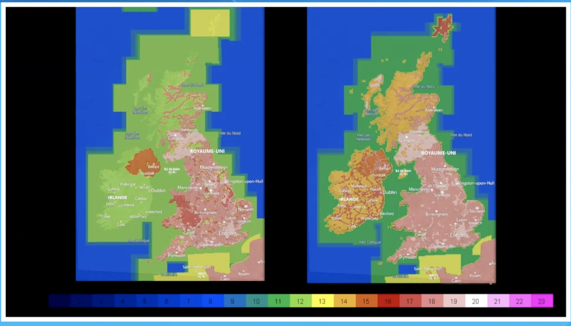 Während England nur geringfügige Verbesserungen erfährt, gibt es in Schottland, Wales und Irland bedeutende Fortschritte. London und der größte Teil Englands erreichen jetzt eine Auflösung von etwa 50-100 cm, während der Rest des Vereinigten Königreichs je nach verfügbarem Datenmaterial eine Auflösung von etwa 2 Metern hat.