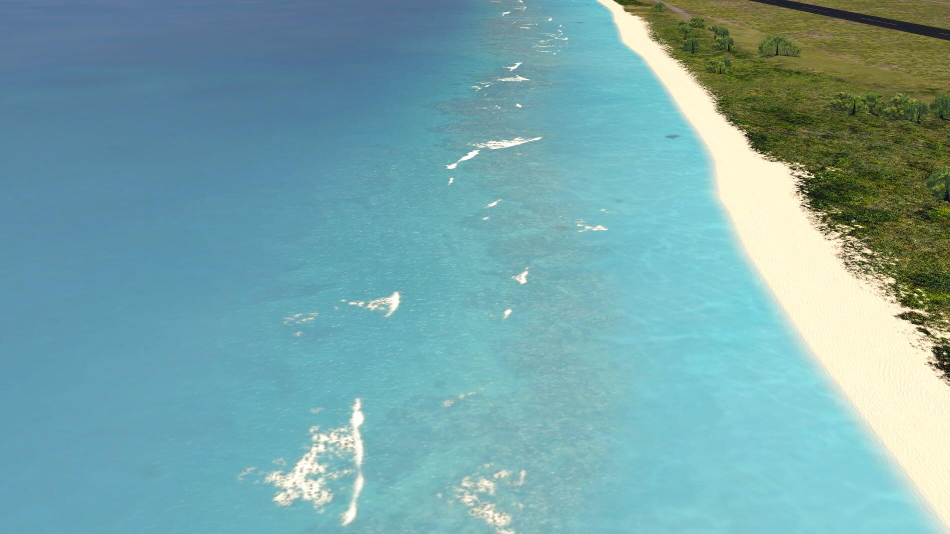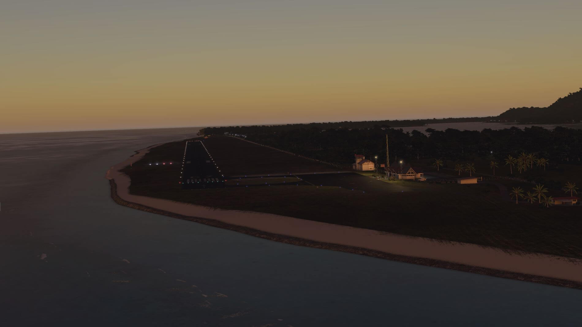 Uns wird eine Landebahn präsentiert, die im Großen und Ganzen dem entspricht, was auf jedem Satellitenbild zu sehen ist. Der einzige wirklich auffällige Unterschied ist das Fehlen des ziemlich großen Gebäudes mit rotem Dach links von Landebahn 29. Der Rand der Landebahn sieht unfertig aus und die Oberfläche ist eine Kombination aus dunklem und hellem Asphalt. Gemalte Markierungen befinden sich in verschiedenen Phasen des Verblassens. Es gibt keine Lichter, keine Windsäcke und nur ein paar verlassene Hütten und Anlegestellen, um die Landschaft mit durchgehenden Bäumen abzuwechseln. Die Modellierung dieser Landebahn ist hinsichtlich Textur und Detail einwandfrei. Zusätzlich zur Landebahn gibt es einen Wasserflugzeugstart an einem der Docks in der Lagune.