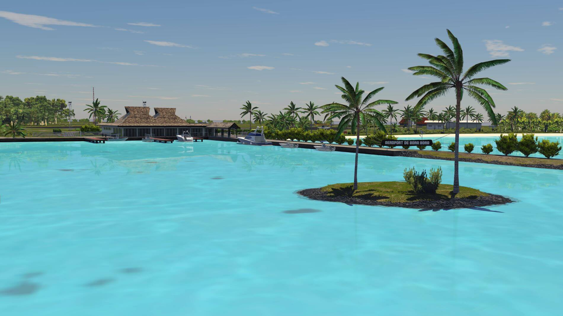 Auf der Lagunenseite des Terminalgebäudes werden sich Wasserflugzeugpiloten über einen von den Entwicklern großzügig zur Verfügung gestellten Wasserflugzeugstart freuen. Da es sich höchstwahrscheinlich um eine wahrhaftige Form handelt, muss auf den Wasserbetrieb in der Lagune geachtet werden, da sich dort eine große Anzahl von Wasserfahrzeugen bewegt. Starts und Landungen müssen unter Berücksichtigung der Windrichtungen sorgfältig geplant werden. Einige dieser Boote bewegen sich schnell, andere kommen zu dritt hintereinander.