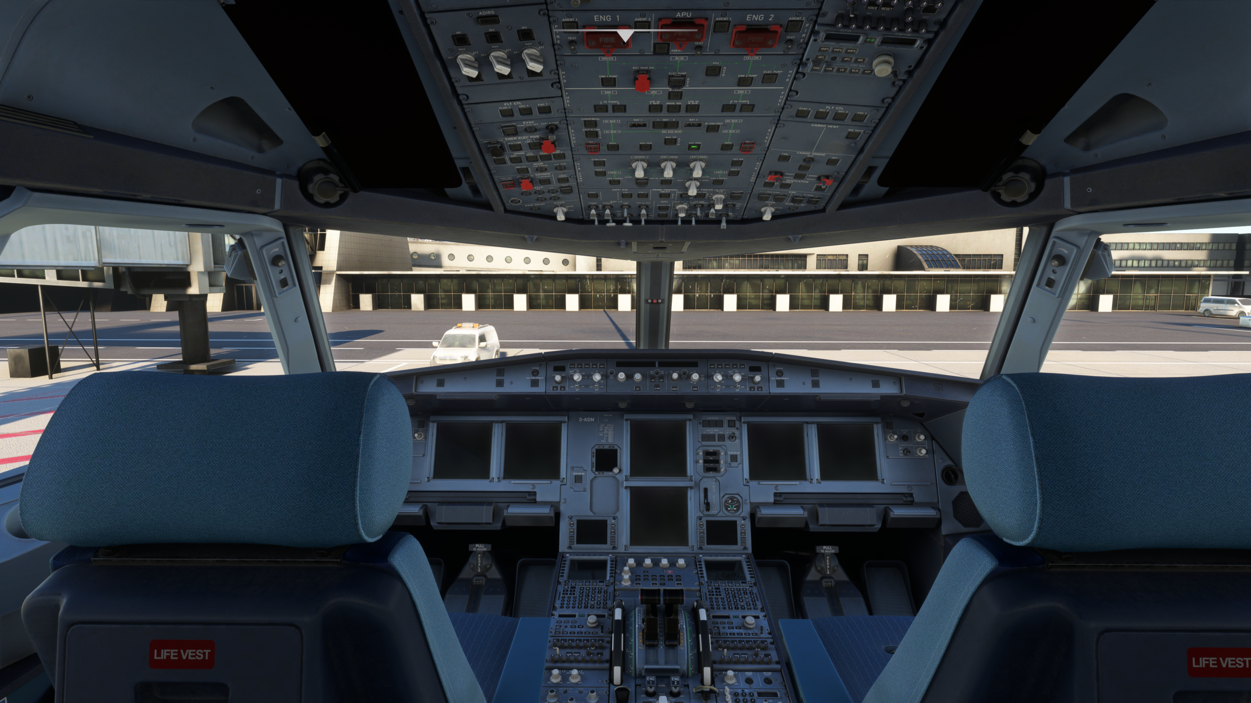Ein ähnlicher Eindruck stellt sich auch im Cockpit ein. Die Modellierung und Texturierung des Innenraums sind ebenfalls gut, aber sie erreichen nicht das Niveau, welches man beim Platzhirsch Fenix bekommt. Hier zeigt sich, dass der FSL A321ceo optisch eher dem Standard entspricht, den man mittlerweile auch von einem iniBuilds Default-Flieger geliefert bekommt – solide und zweckmäßig, aber ohne die zusätzlichen Feinheiten, die den Unterschied ausmachen. Ob das für einen Preis von über 80€ noch gerechtfertigt ist, bleibt fraglich.