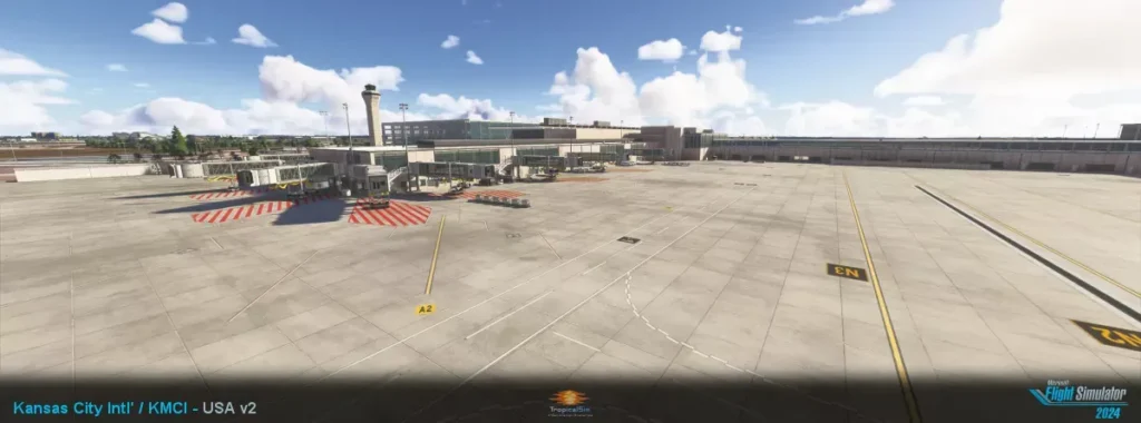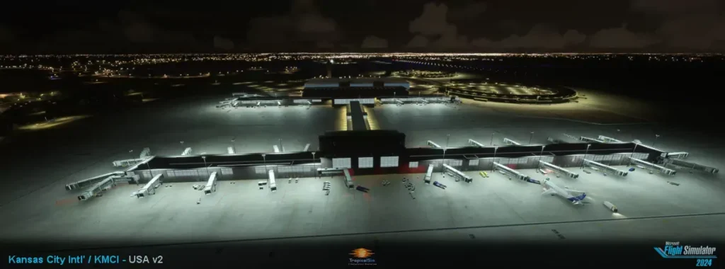 Die Version 2 des Kansas City International Airports (KMCI) von TropicalSim für Microsoft Flight Simulator 2024 bietet eine aktualisierte Darstellung des Flughafens mit dem neuen Terminal, das die alten Terminals B und C ersetzt. Das Produkt beinhaltet detaillierte Interiormodelle, PBR-Texturen und eine verbesserte Nachtbeleuchtung.