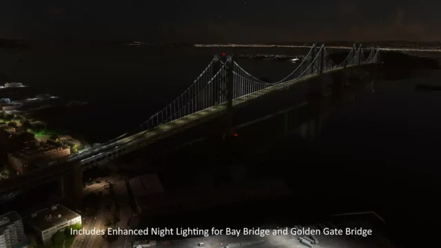 Die San Francisco Bay Area Bridges von Luna Park Creations für Microsoft Flight Simulator 2020 fügen etwa 25 detaillierte Brücken, Viadukte und Anschlüsse der Region hinzu. Das Produkt ersetzt die photogrammetrischen Brücken durch hochwertige Modelle und verbessert die Beleuchtung.