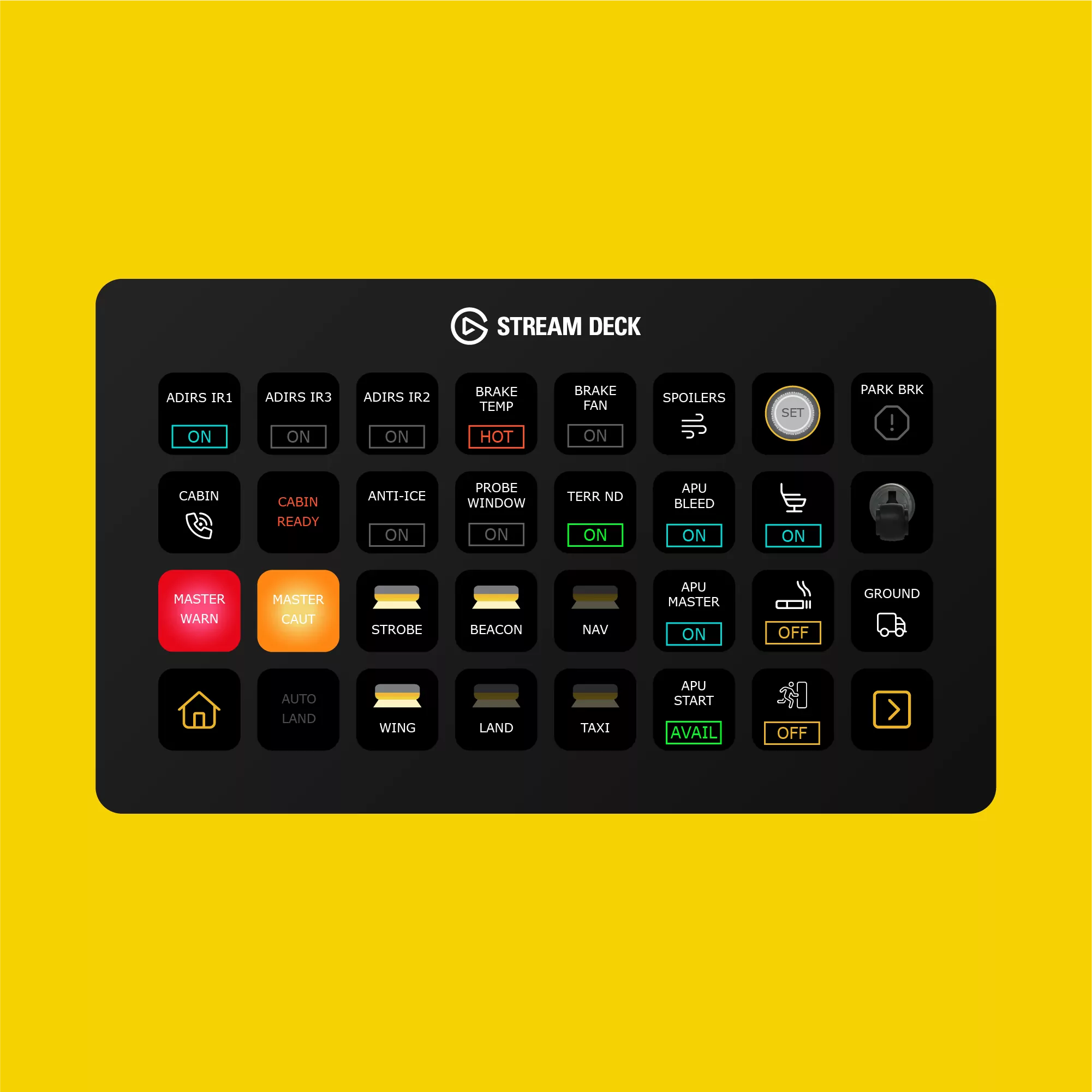 - Erweiterte EFIS-Steuerung: Zugriff auf MACH/SPD, CSTR, VOR D, NDB, ARPT, HDG V/S und METRIC-Funktionen