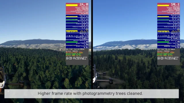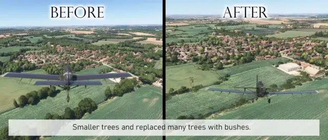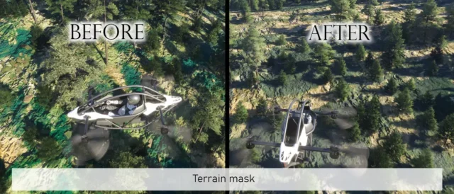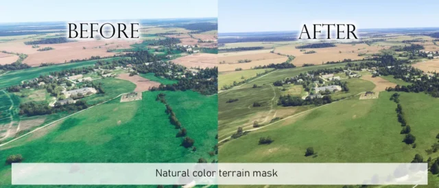 Das Add-on ersetzt generische oder photogrammetrische Platzhalterbäume durch regionaltypische Vegetation. So werden beispielsweise Palmen entlang der Pazifikküste hinzugefügt. Zudem korrigiert es übersättigte Farben und passt Biome an, um spezifische Landschaften wie Bananenplantagen oder Küstendünen akkurat darzustellen. Es behebt auch saisonale Ungenauigkeiten in der südlichen Hemisphäre.