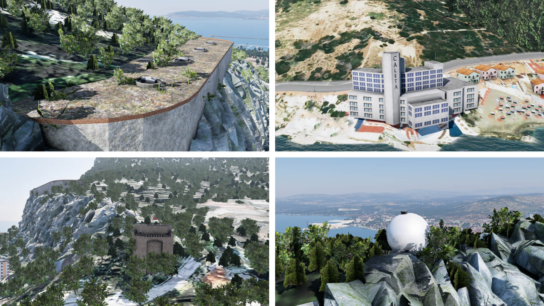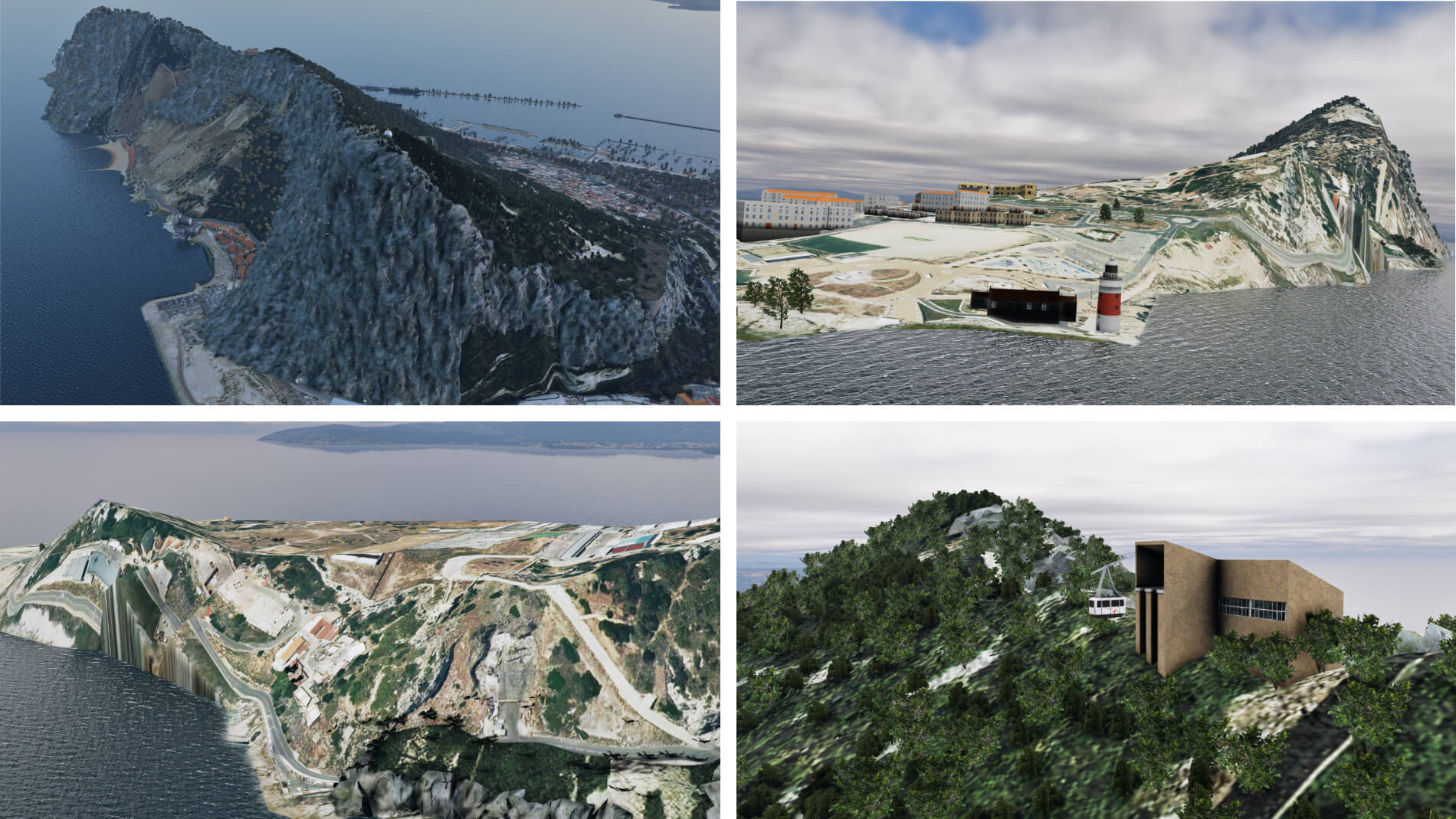 Die Entwickler haben sich auch bemüht, dem Felsen Leben einzuhauchen, indem sie den größten Teil mit einer benutzerdefinierten Textur bedeckt haben, die die raue Kalksteinoberfläche simuliert. Orthobilder und benutzerdefinierte Vegetation werden verwendet, um jene Bereiche des Felsens darzustellen, die nicht mit der benutzerdefinierten Textur bedeckt sind.