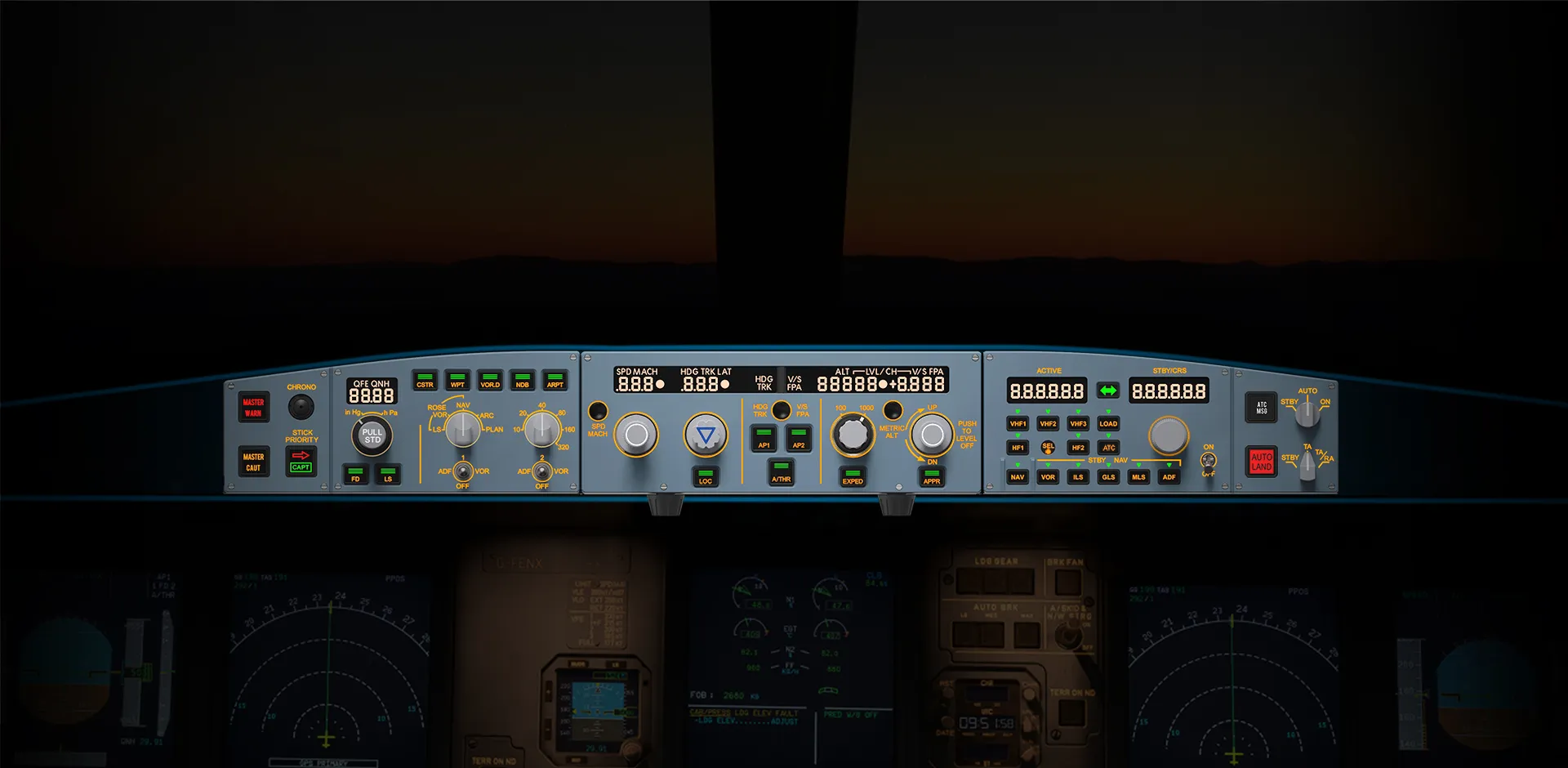 Ein weiteres Gimmick, das für Profis und Perfektionisten zählt: Die Beleuchtung, also Lämpchen und Hintergrund-Illumination, synchronisiert sich mit dem FCU CUBE. Das gesamte Cockpit sieht dadurch stimmig aus – besonders bei wechselnden Lichtverhältnissen. LCD-Dual-Farbbildschirme sorgen zusätzlich für beste Ablesbarkeit und einen starken Kontrast.