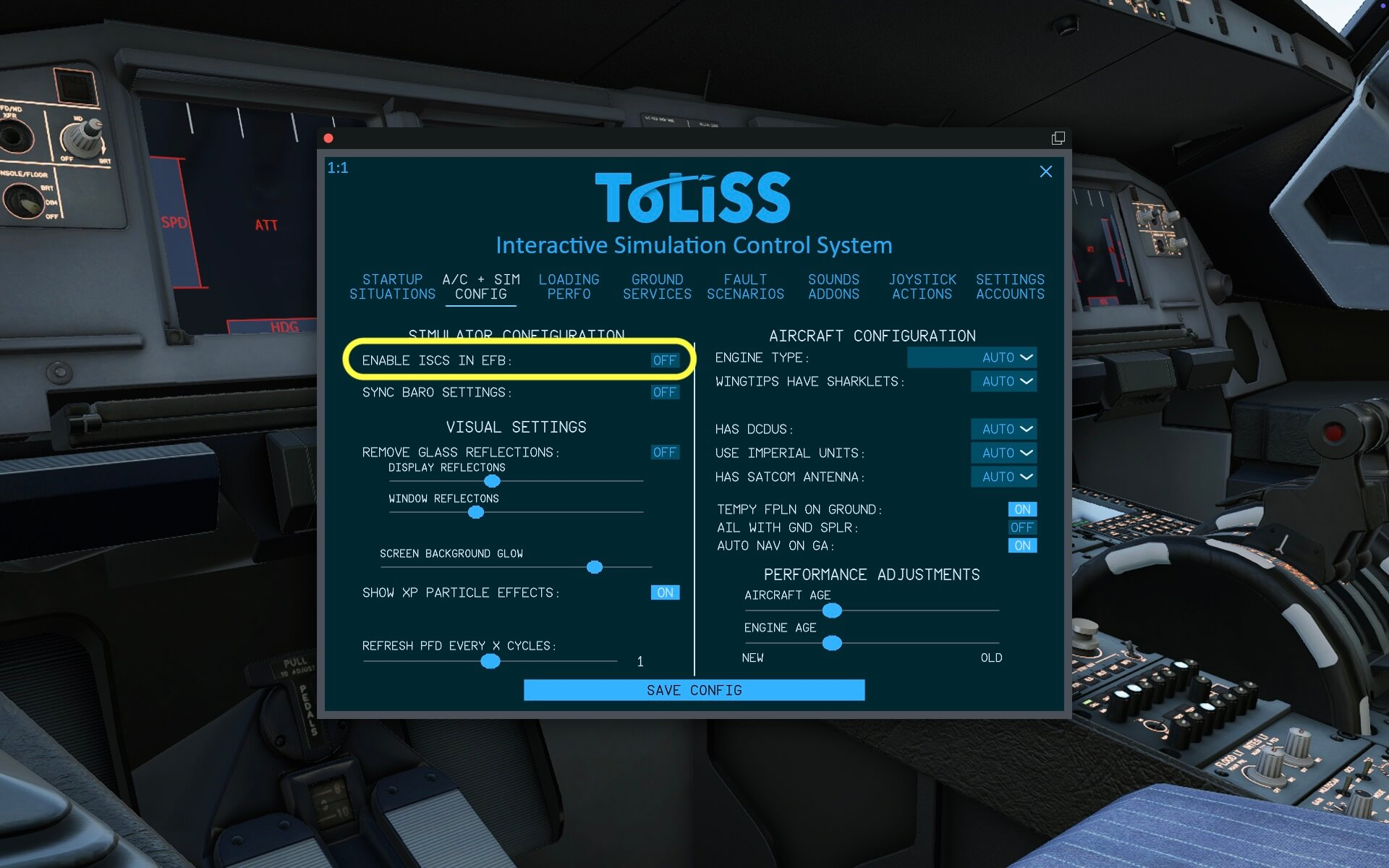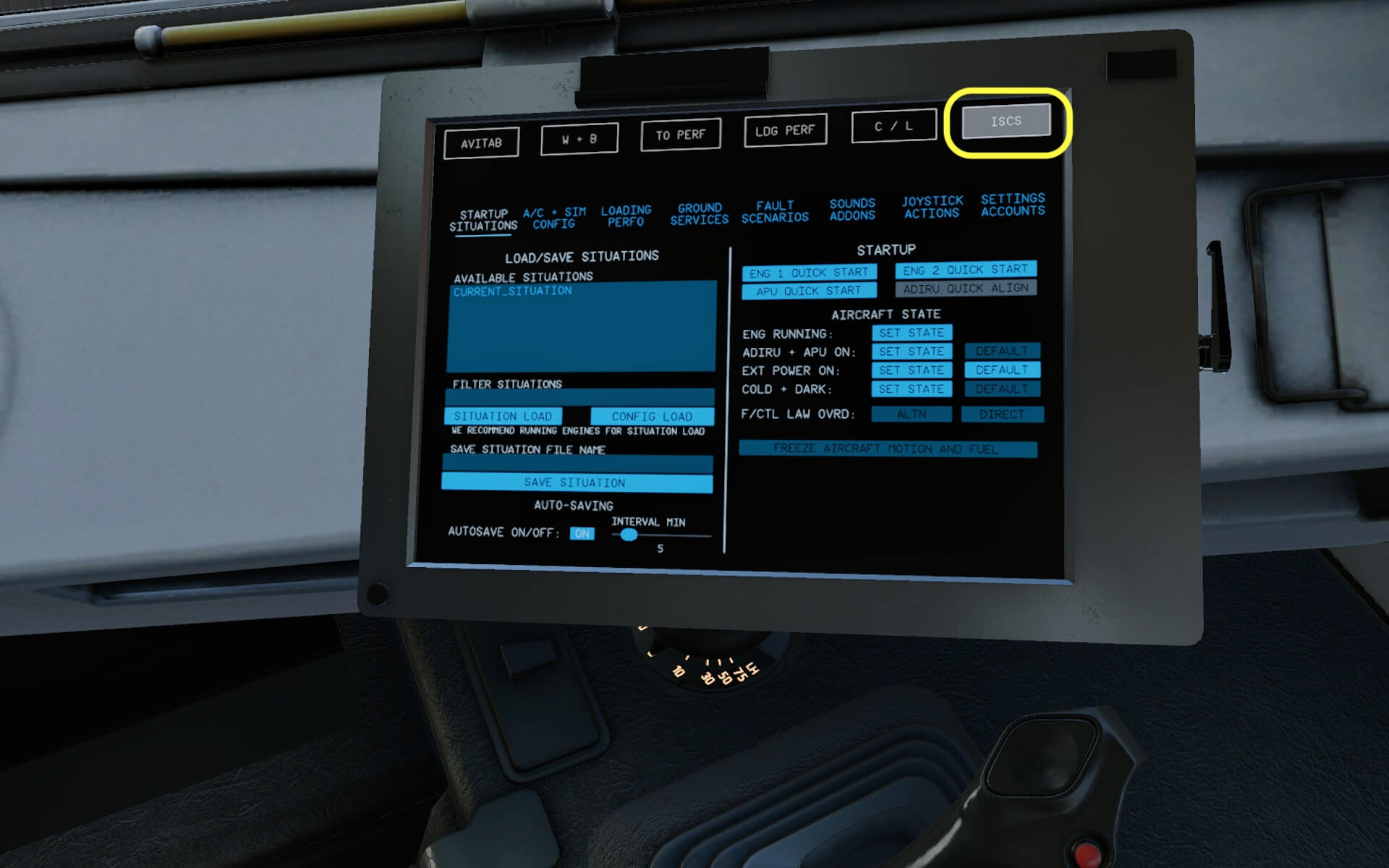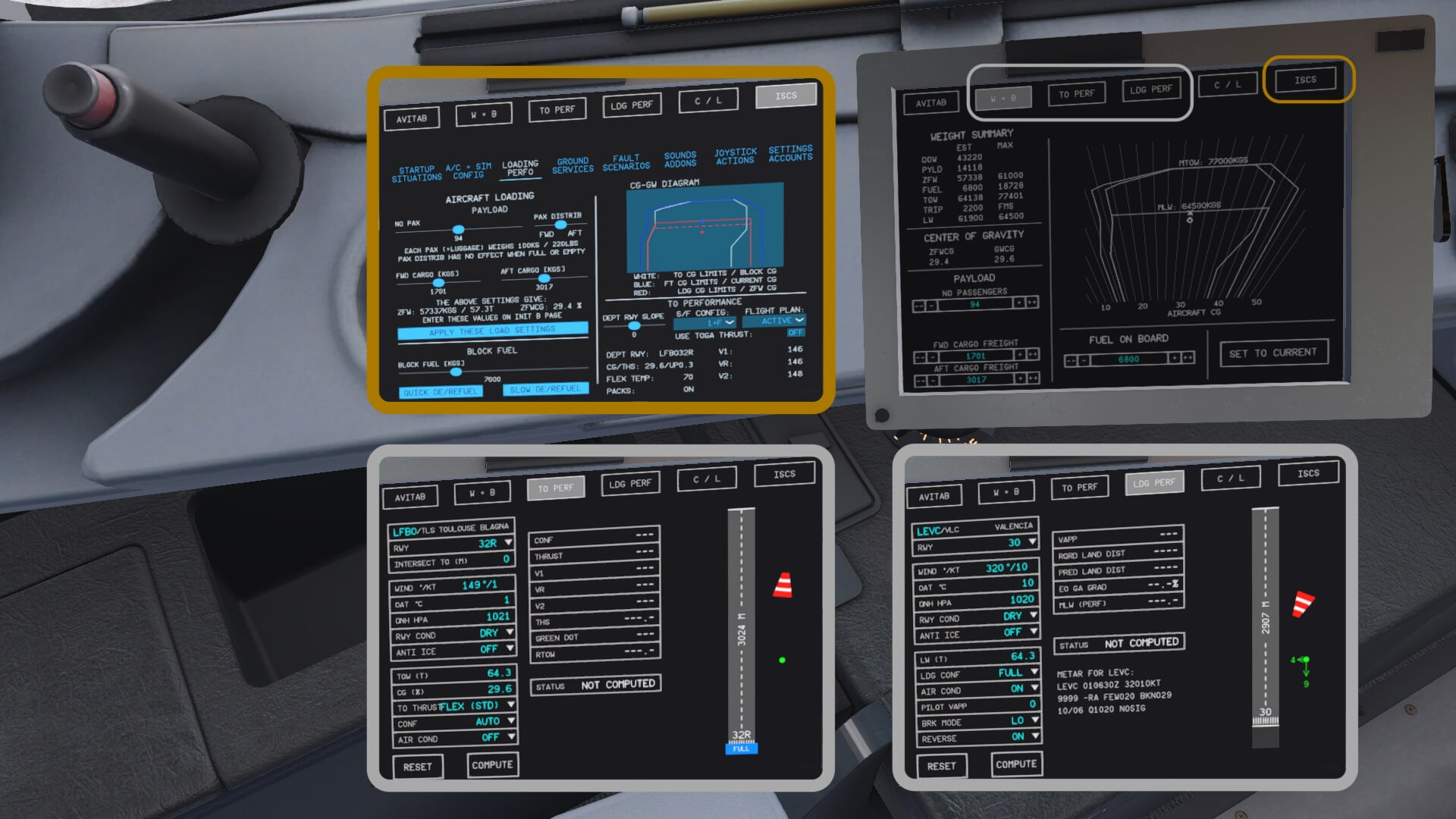 Im Laufe der Zeit wurde die ToLiss ISCS vollständig in den AviTab integriert. Heutzutage ist der AviTab nicht nur ein eigenständiges EFB (Electronic Flight Bag); er kann auch die ToLiss ISCS enthalten. Sie müssen jedoch weiterhin das AviTab-Plugin installieren. In der echten A320ceo haben Piloten ein Tablet für verschiedene Berechnungen, den Zugriff auf Dokumente und so weiter. Standardmäßig öffnet sich die ToLiss ISCS als eigenständiges Pop-up-Fenster; Sie können sie jedoch in den AviTab EFB integrieren. Wenn Sie die ToLiss ISCS-Integration in AviTab aktivieren, sieht dies wie folgt aus.