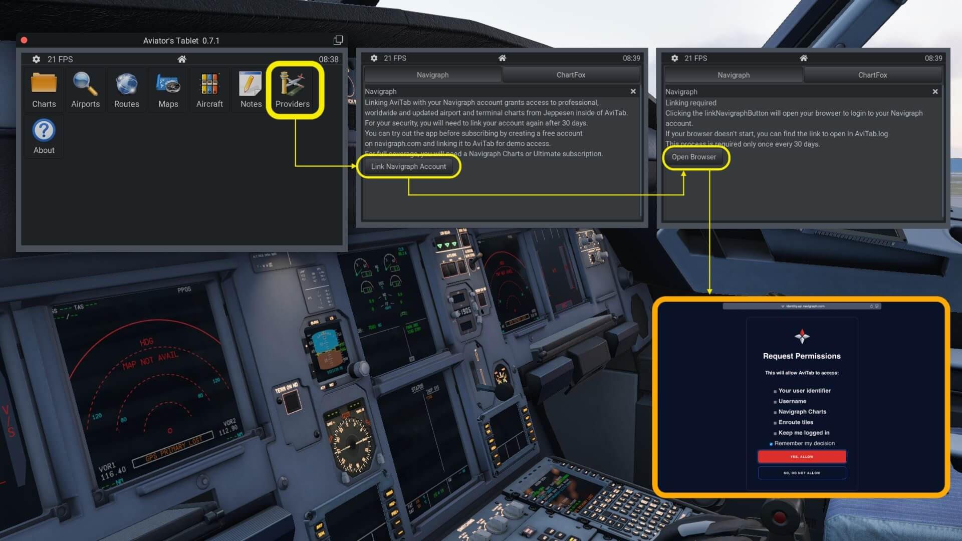 Abgesehen von den Informationen im obigen Absatz benötigen Sie wirklich ein Navigraph-Konto. Ich schreibe Ihnen bewusst, dass Sie es wirklich brauchen, da die ToLiss A320ceo alle Aspekte im Zusammenhang mit den AIRAC-Zyklen nutzt und auch für eine optimale Integration mit beispielsweise SimBrief zum Laden von Flugplänen und anderen Daten. Wie bereits erwähnt, ist das SimBrief-Konto kostenlos, was eine gute Nachricht ist; für eine optimale Integration mit ToLiss benötigen Sie jedoch ein kostenpflichtiges Navigraph-Konto.