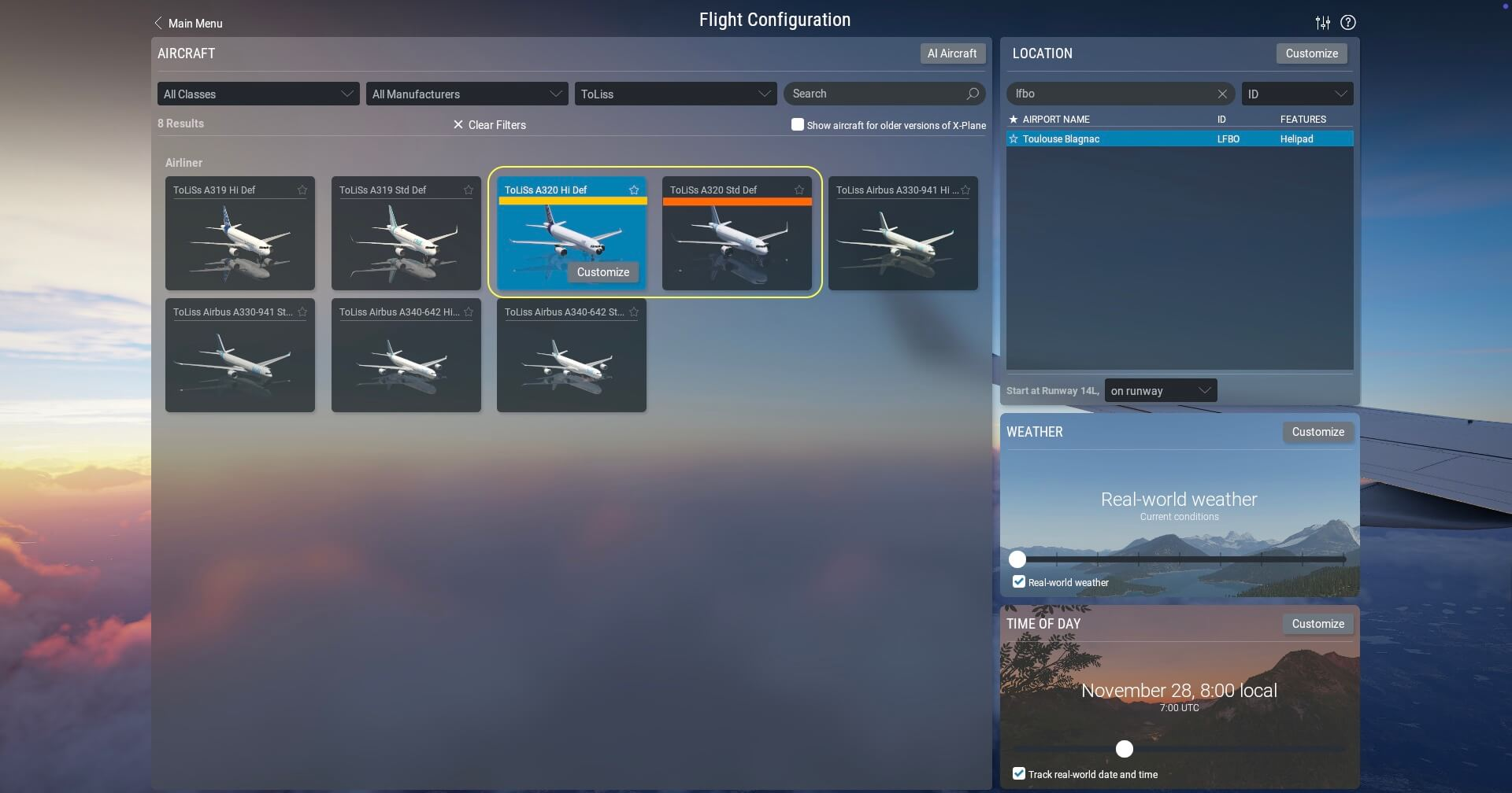 Laut ToLiss gilt: „Die ‚Hi-Def‘-Version des Flugzeugs verwendet Texturen mit höherer Auflösung und ist das empfohlene Flugzeugmodell zum Laden, wenn Ihre Hardware dies unterstützt. Die ‚Std Def‘-Version ermöglicht Framerate-Verbesserungen für schwächere Hardware, insbesondere wenn Sie wenig VRAM haben.“