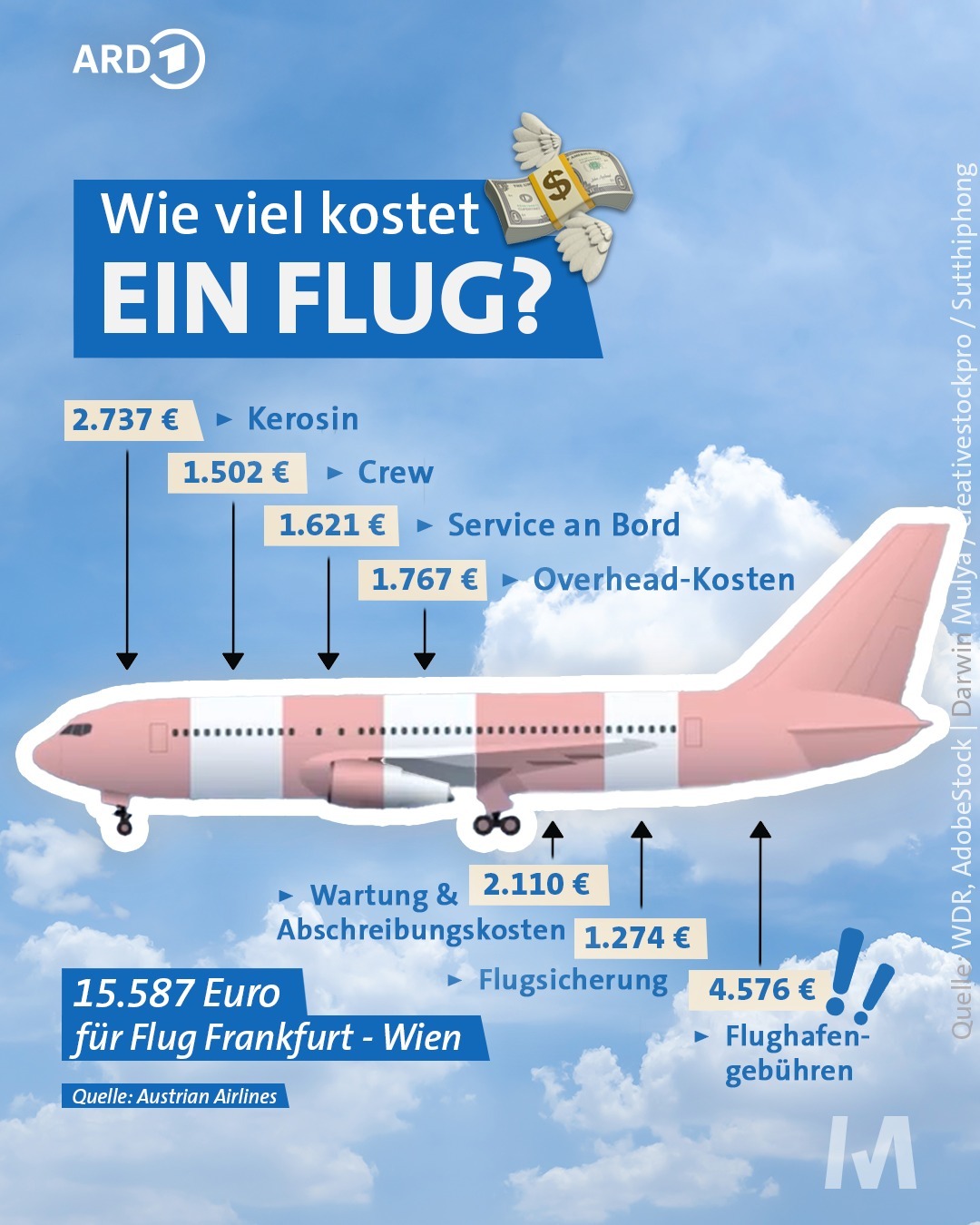 Relativ überraschend entpuppten sich die Kosten auf dem Flughafen wie etwa Sicherheitsgebühren als der größte Posten in der Rechnung. Was die Flugpreise anging,