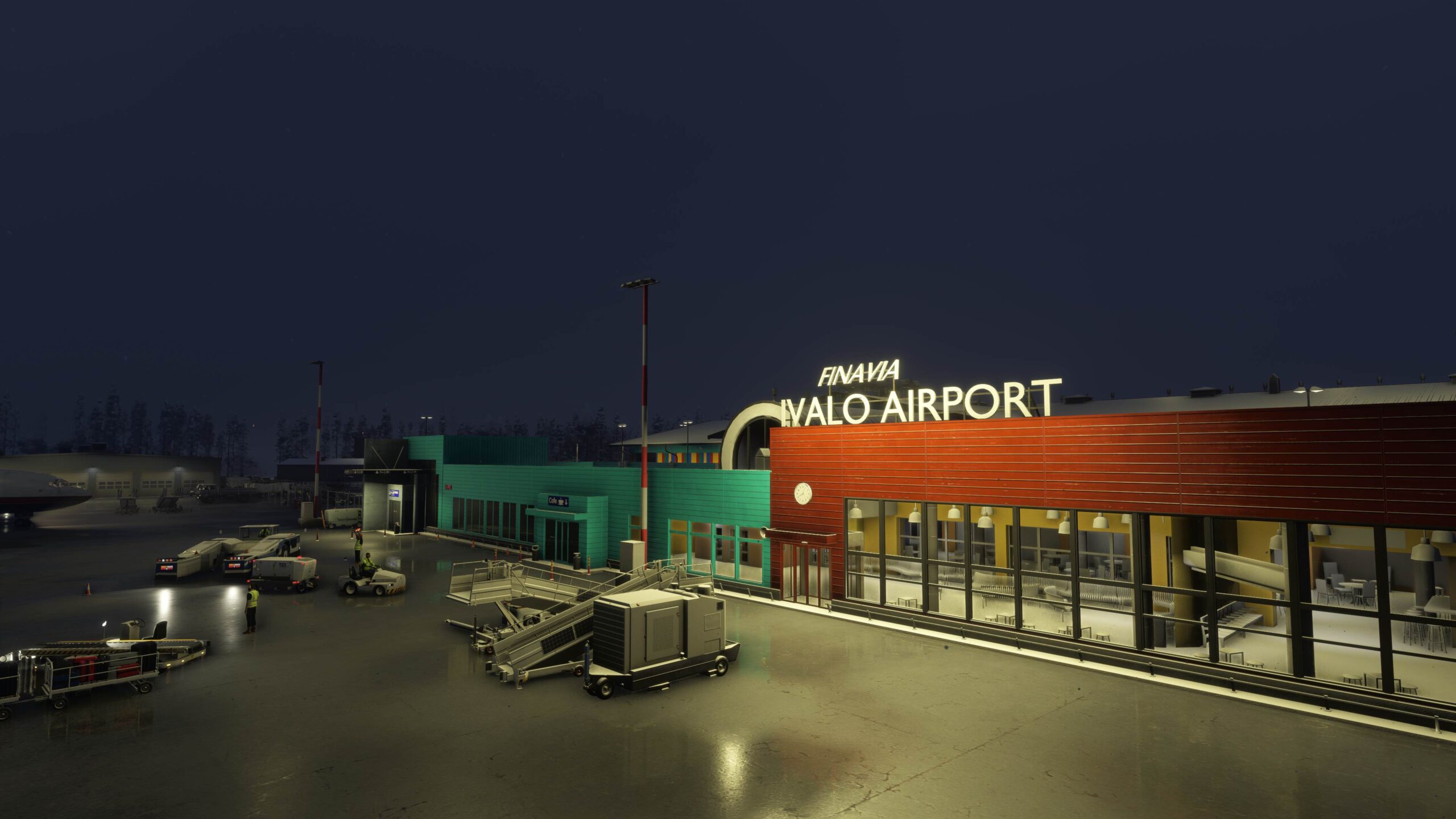 Nach dem Ausrollen stehen wir allein auf dem kleinen Vorfeld von Ivalo. Es dauert nicht lange bis es dunkel wird. Wir hatten also das richtige Zeitfenster im Anflug getroffen. Schneeflocken treiben im Licht der Lampen, die Fracht wird entladen. Auftrag erfüllt.
