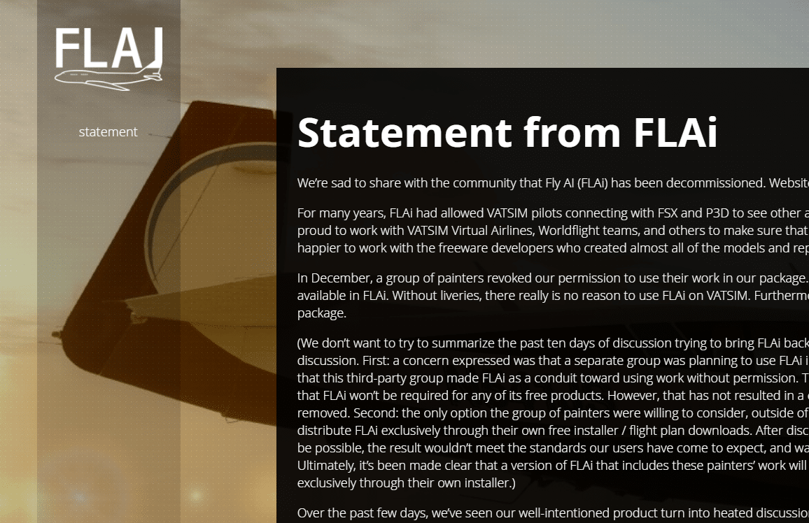 FLAi hat FSX und P3D Piloten ermöglich, andere Flugzeuge mit der richtigen Livery (Bemalung) im Onlinenetzwerk VATSIM zu sehen. Das Team hat für Events sogar