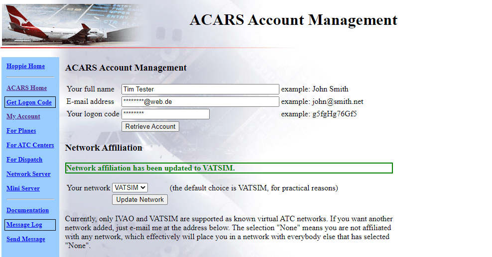 Jeroen Hoppenbrouwers, der Vater hinter dem virtuellen ACARS Netzwerk, hat eine Lösung geschaffen, um zwischen den verschiedenen Onlinenetzwerken unterscheiden zu können. Es gab in den
