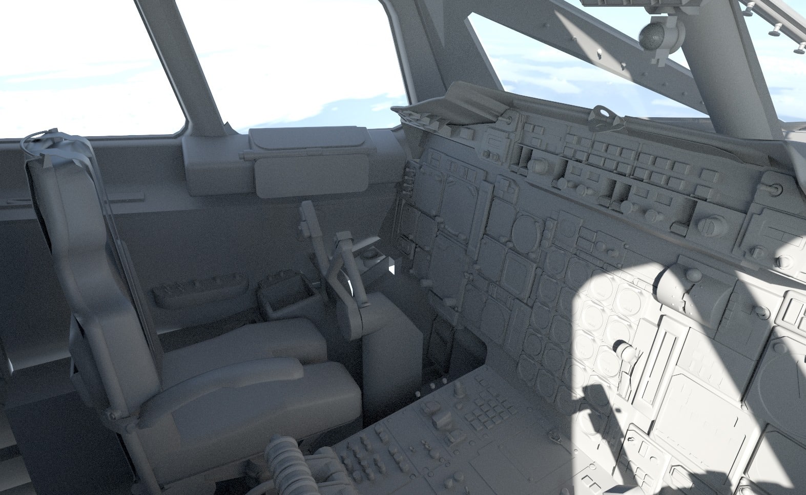Die Caravelle ist aber nicht das einzige Stück Luftfahrtgeschichte, dass die Entwickler derzeit entwickeln: Nach Ankündigung der Concorde sind auch hier erste texturenlose Renderings des Cockpits auf Facebook aufgetaucht.