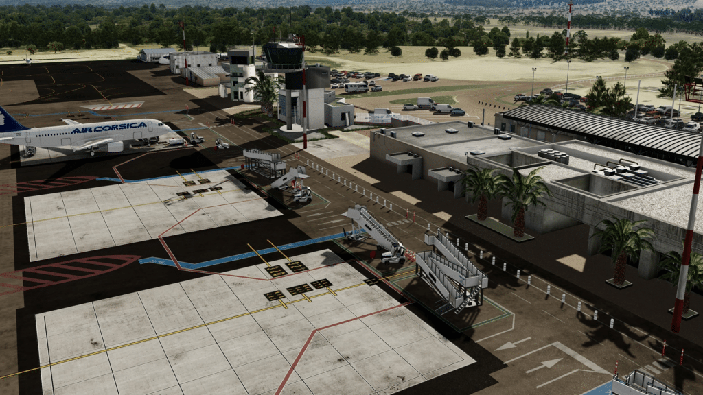 Dieses Addon bietet einen perfekt integrierten 25 cm/Pixel fotorealen Boden für Ihre globalen Addons in Korsika. Erleben Sie AI-Linienflugzeuge und GA-Verkehr (einschließlich A320/321 Air-France Rotationen von LFKF nach LFKC den ganzen Tag), während Sie über ultra-detaillierte Parkplätze, Rollwege und Landebahnen rollen. PBR auf allen Objekten und Ambient Occlusion auf Objekten und dem Boden erwecken den Flughafen zum Leben, während das 1-Meter-Mesh im gesamten Flughafen für ein nahtloses Simulationserlebnis sorgt.