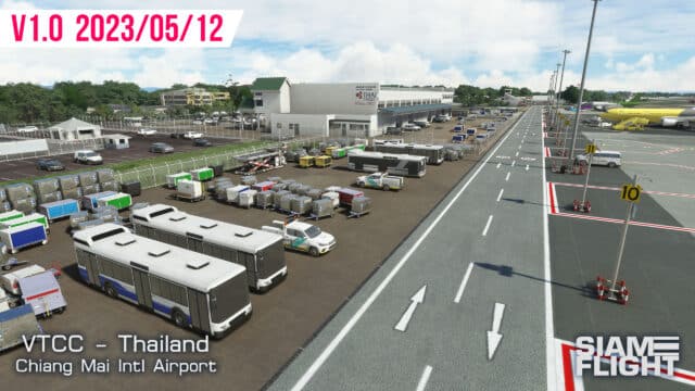 Das SiamFlight Chiang Mai International Airport (ICAO:VTCC IATA:CNX) Add-on bietet eine breite Palette von Funktionen, die Ihre Simulationserfahrung sicher verbessern werden. Zu diesen Funktionen gehören benutzerdefinierte Szenerie-Objekte, benutzerdefinierte Jetways, Wing 41 Hangar und Special Operation Air Wing Spawn-Punkte, Gate-Nummer und Apron/Taxiways/Runway Marking, handplatziertes Taxiing Guidance Signs System, handplatziertes Taxiways und Runway Light System, vollständige Tag/Nacht-Beleuchtung und handplatzierte Bodenobjekte rund um den Flughafen.