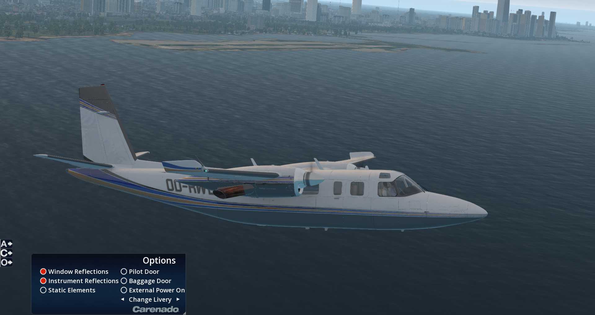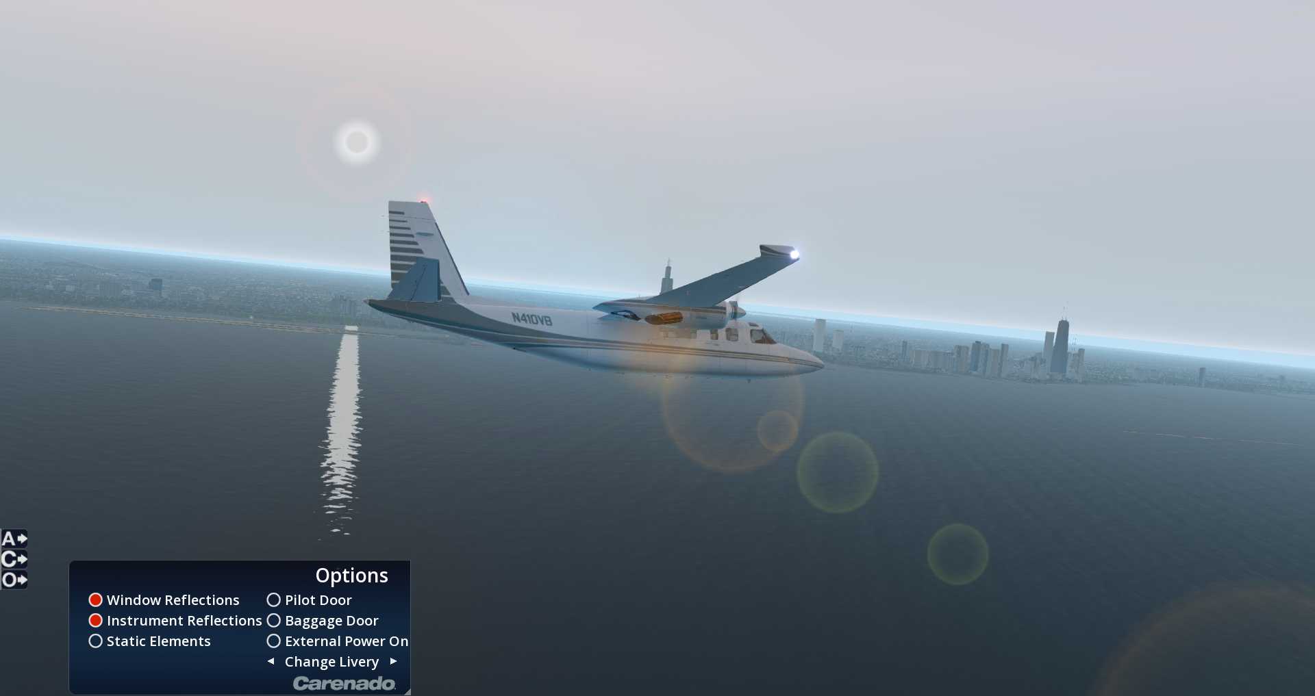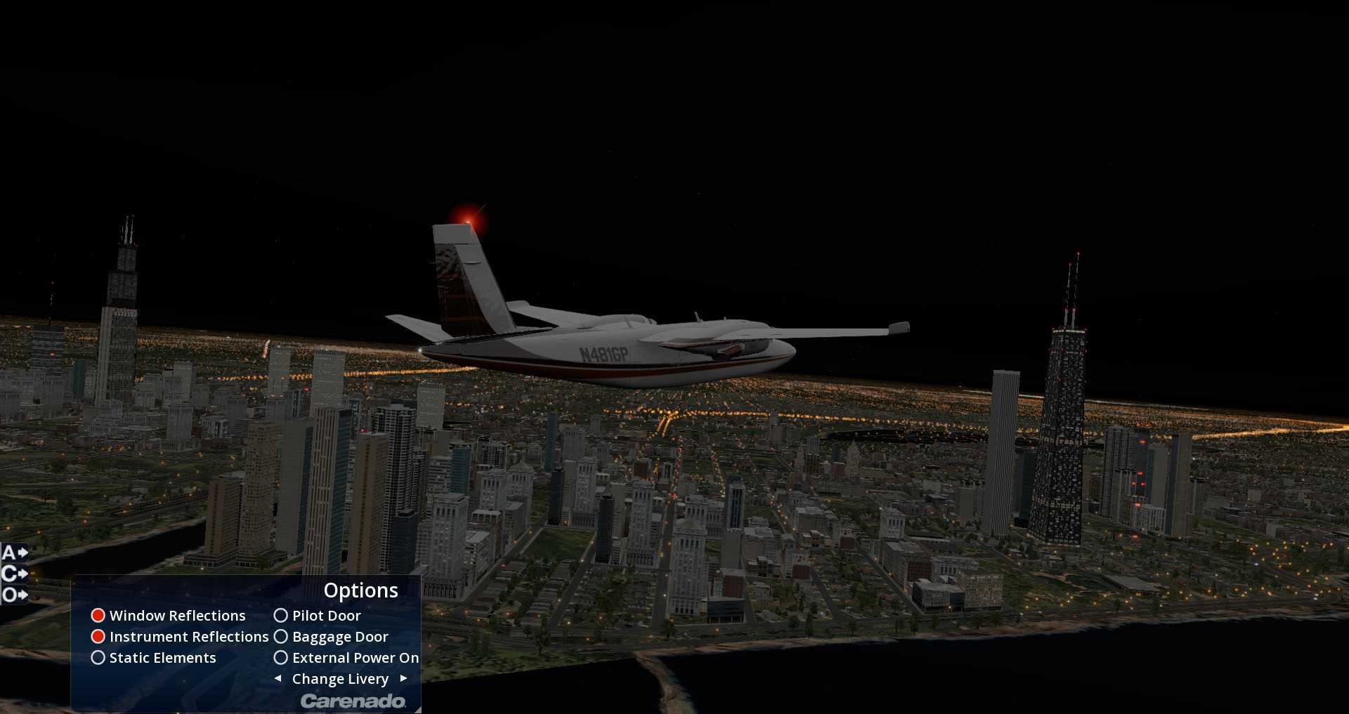 Carenado gibt uns außerdem eine Reihe von zusätzlichen Liveries mit. Wer sich über die Stadt wundert, dies ist die neue Default Szenerie von Chicago mit den Bodentexturen von OrbX Chicago.