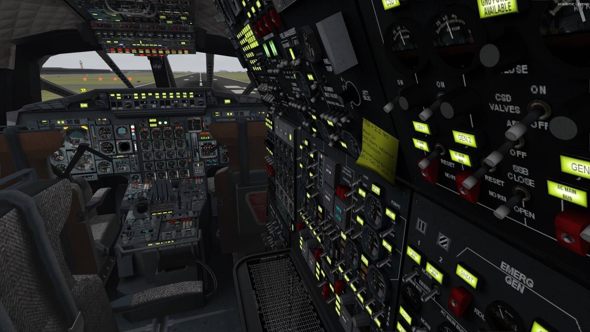 - Custom-coded engineer’s station with operationally required tasks, including fuel management for Centre of Gravity control during high-altitude cruise