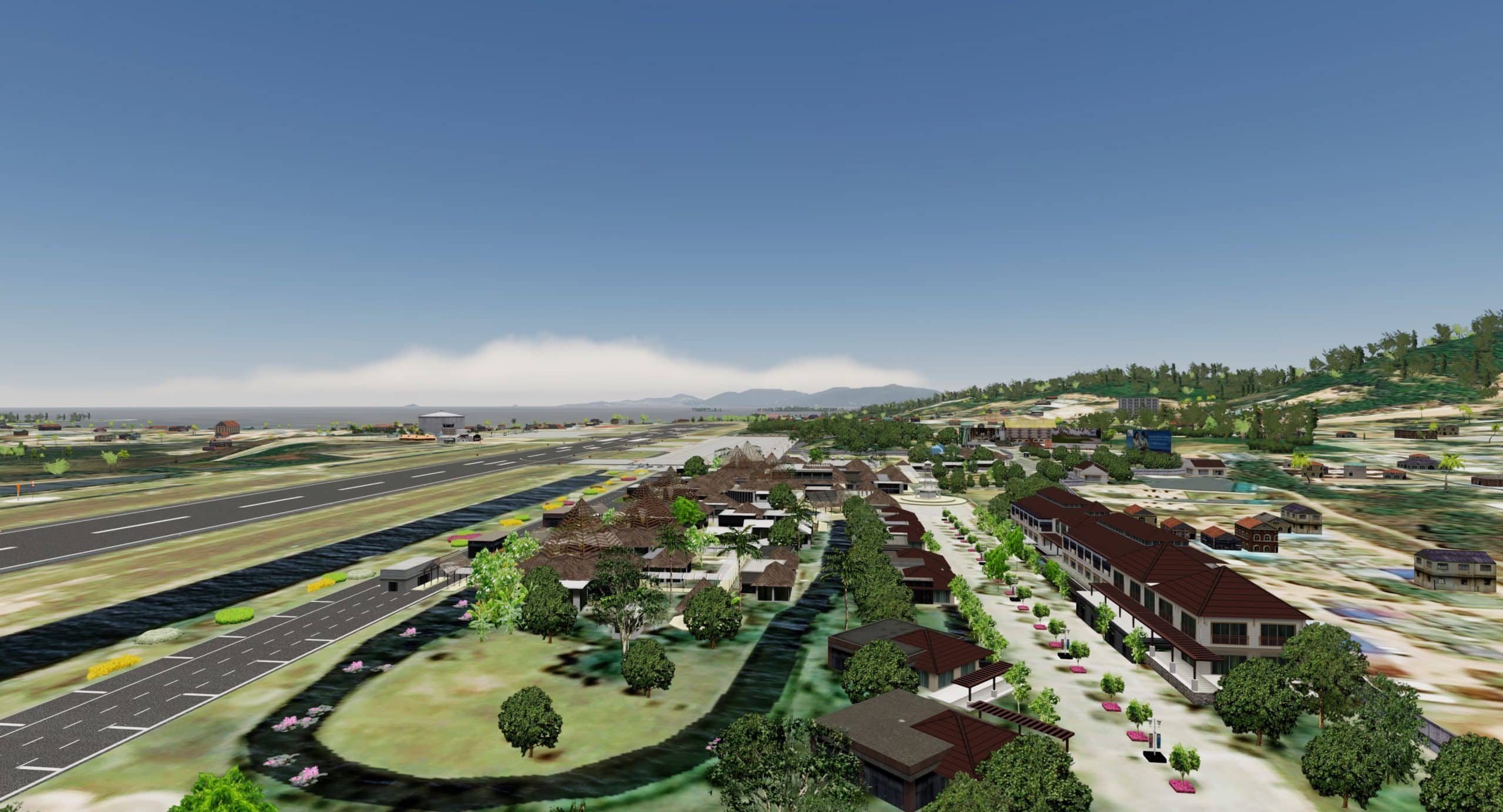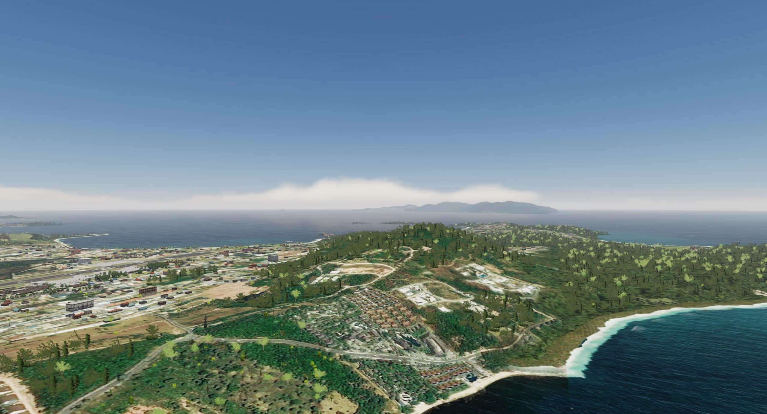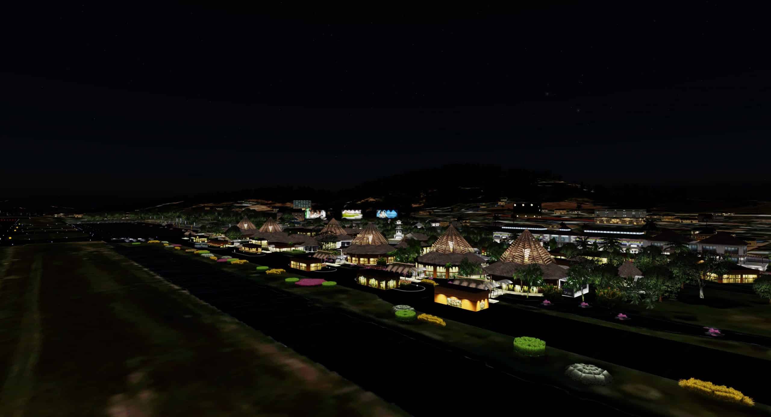 Eine Stärke der Szenerie ist, dass die nahe Umgebung des Flughafens mit eigens designten Objekten bestückt ist. Besonders das Kloster direkt im Endanflug auf Runway 17 und der goldene Buddha sind da, aber auch der Katamaran, der nach Ko Phangan fährt. Die Güte der Fototextur um den Flughafen herum ist zumindest nicht schlechter als unter dem Flughafen.
