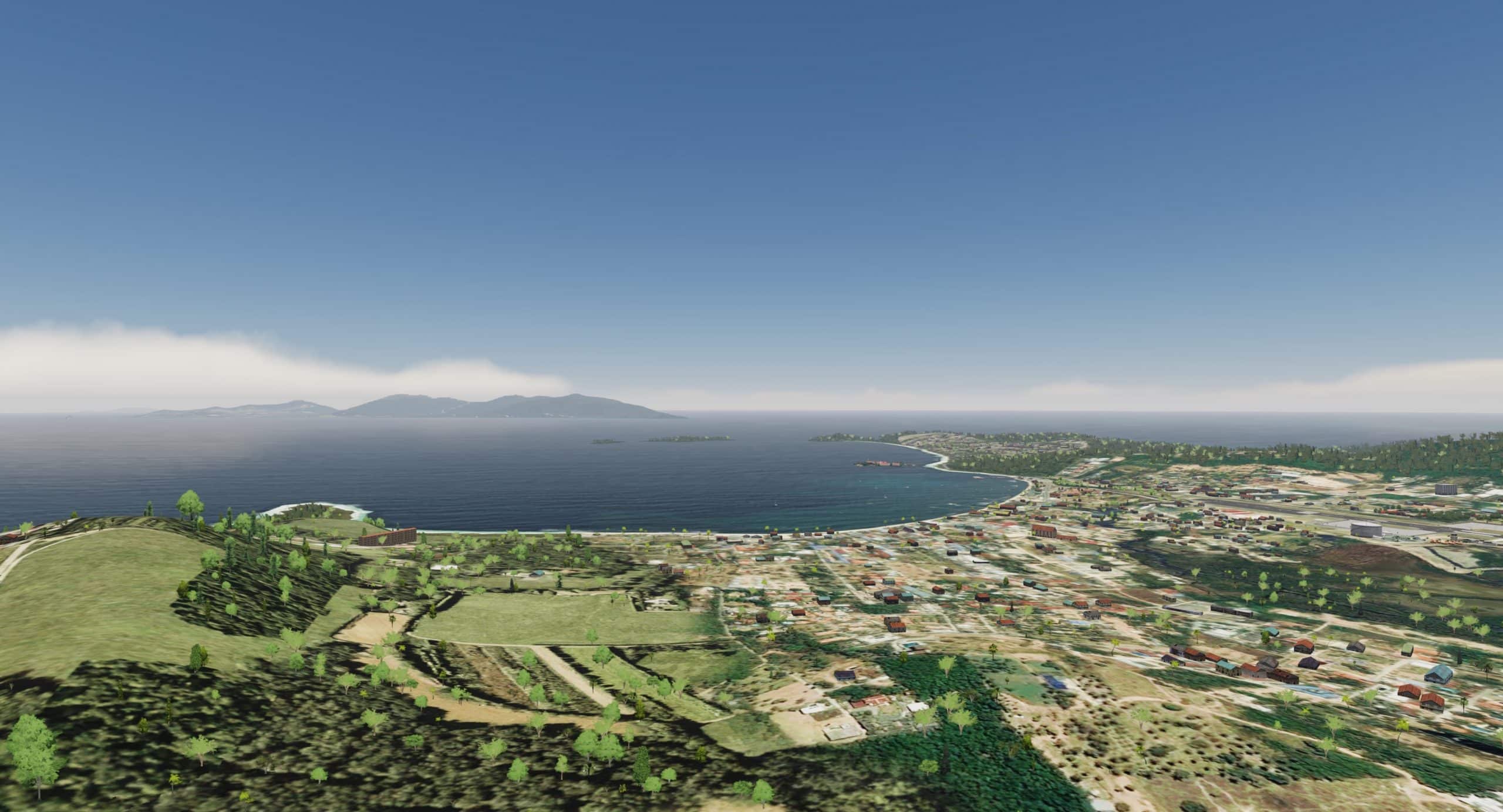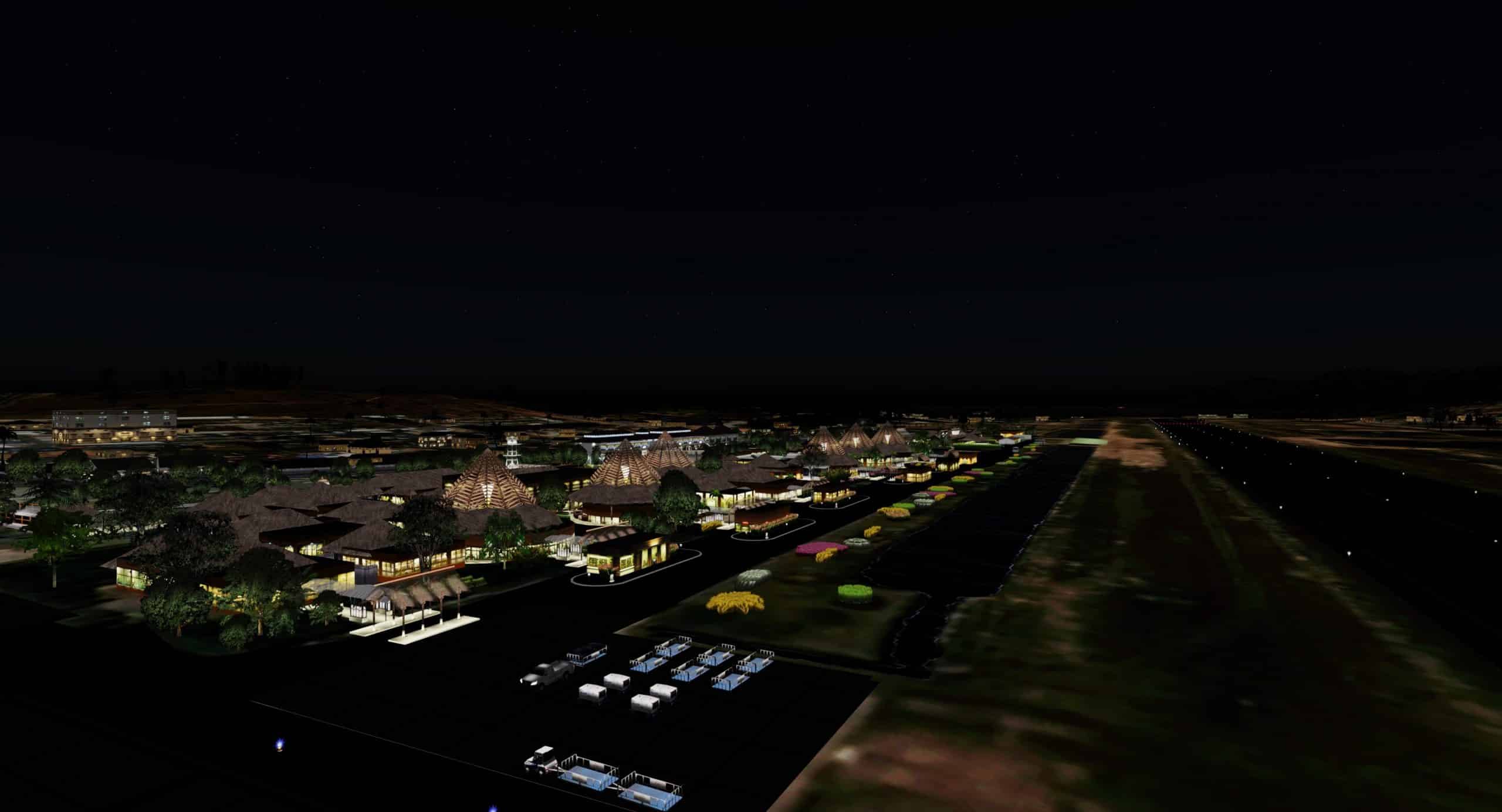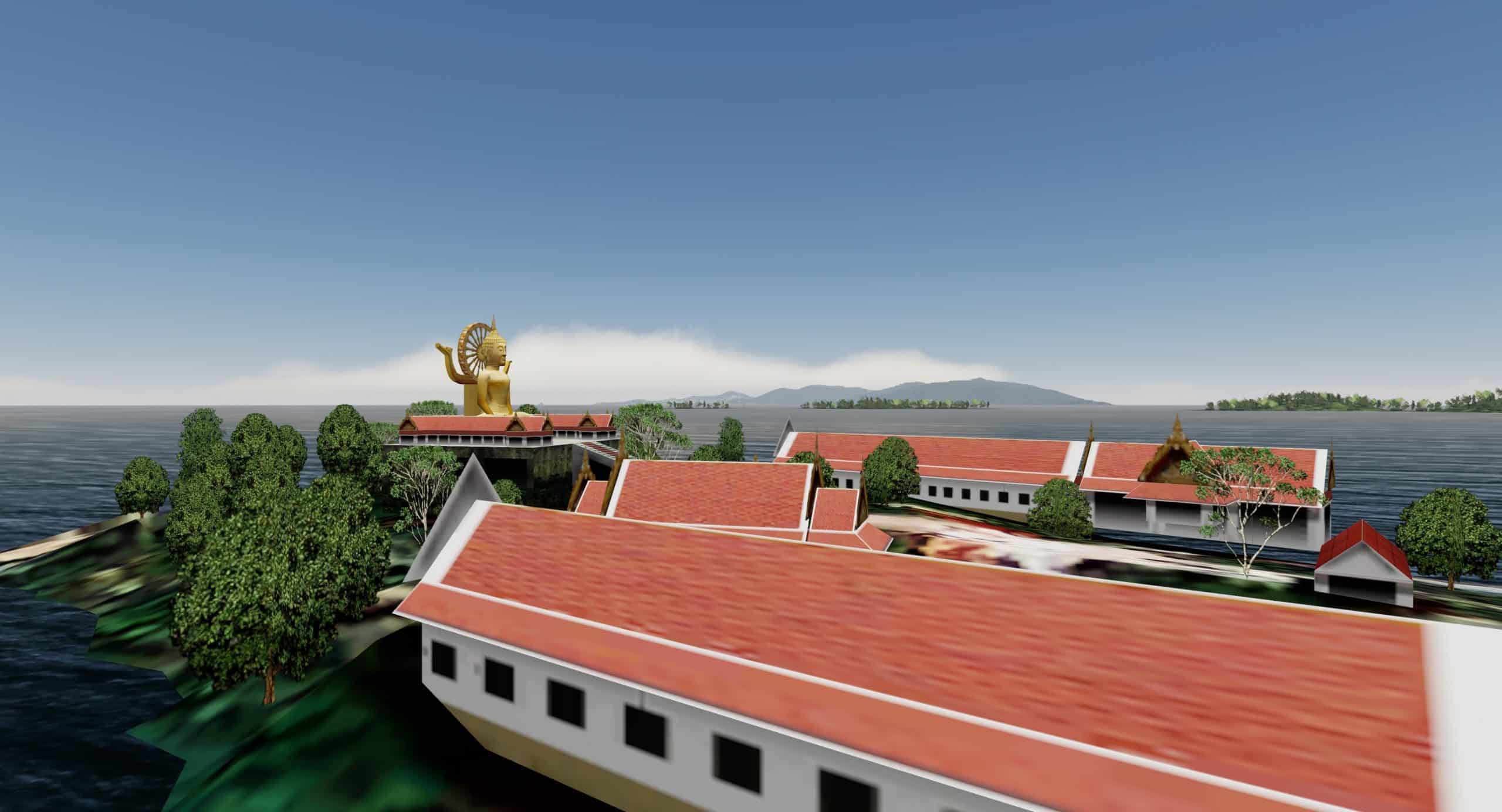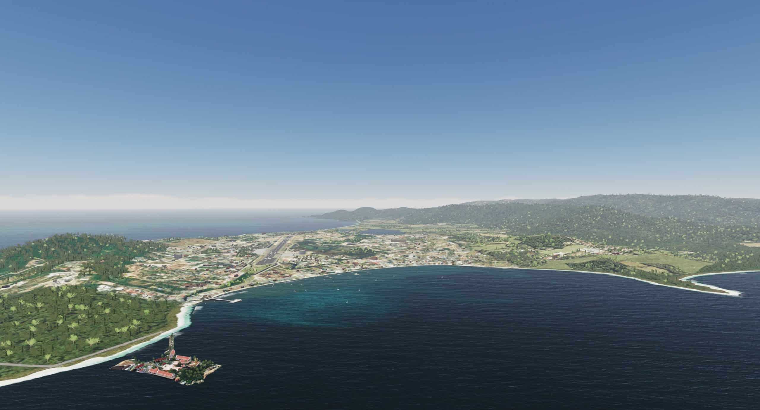 Eine Stärke der Szenerie ist, dass die nahe Umgebung des Flughafens mit eigens designten Objekten bestückt ist. Besonders das Kloster direkt im Endanflug auf Runway 17 und der goldene Buddha sind da, aber auch der Katamaran, der nach Ko Phangan fährt. Die Güte der Fototextur um den Flughafen herum ist zumindest nicht schlechter als unter dem Flughafen.