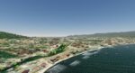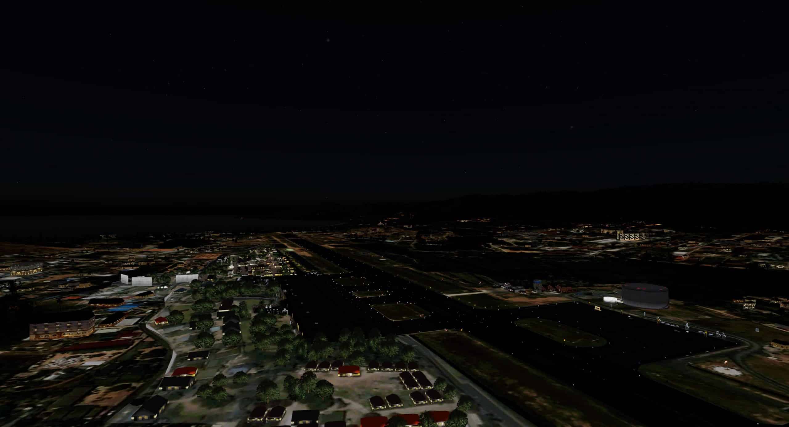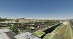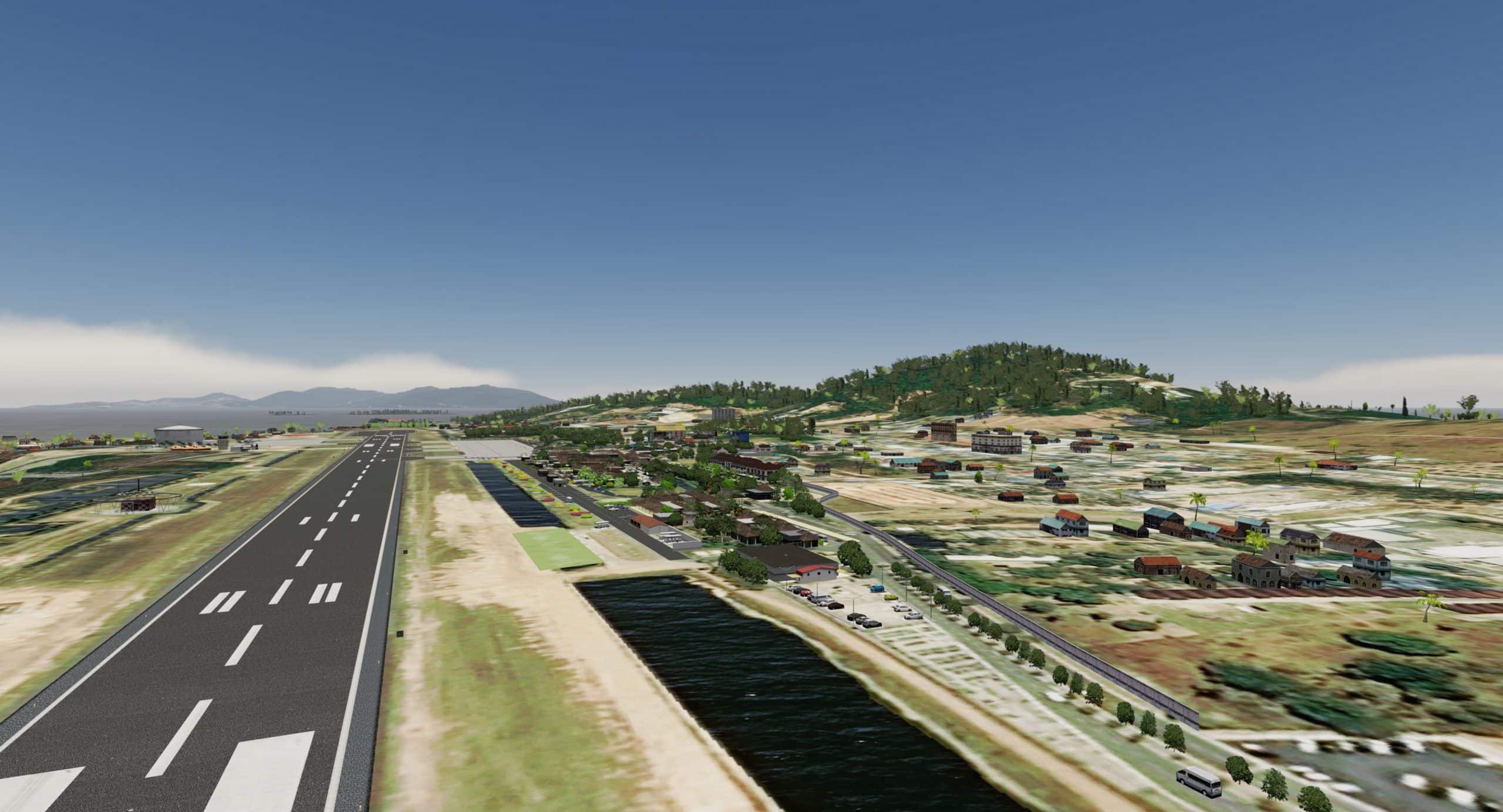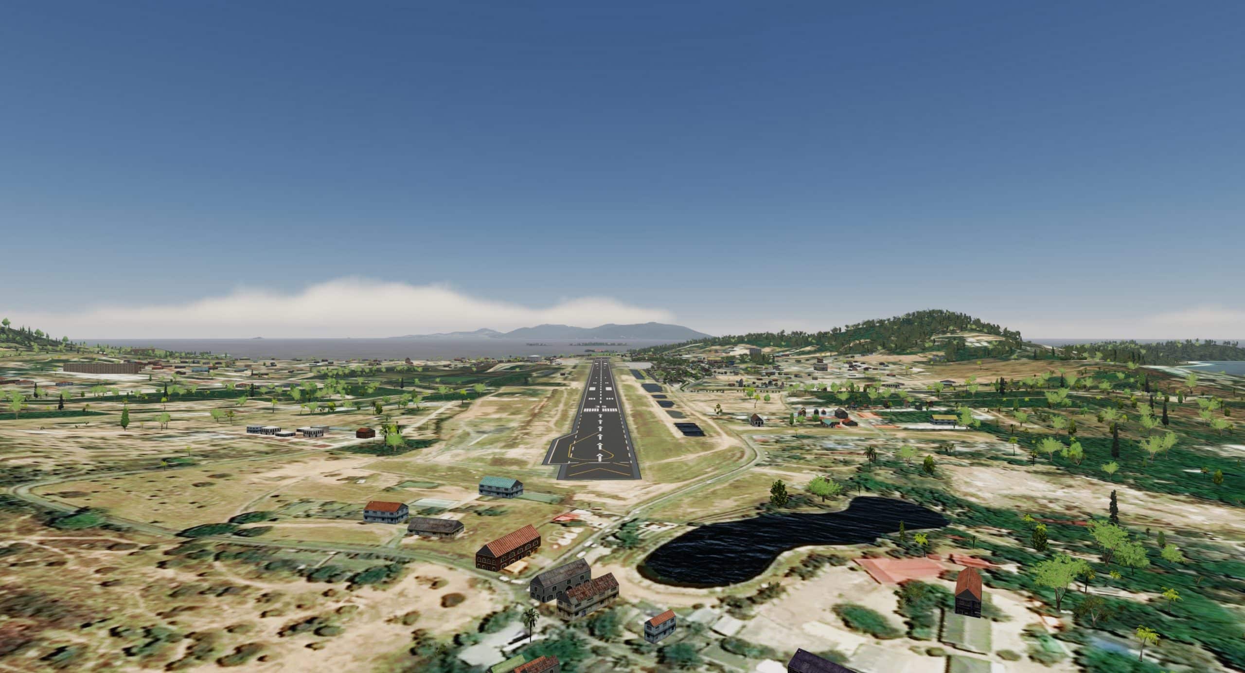 Leider, leider, die Bodentexturen der Landebahn und der Rollwege sind wirklich sehr unansehnlich – wohlgemerkt, es könnte bessere Texturen geben, alleine sie werden bei mir nicht dargestellt. Die Gebäude am Flughafen und in der Umgebung sind gut gemacht, und mit der schlechten Bodentextur am Flughafen könnte ich sogar leben.