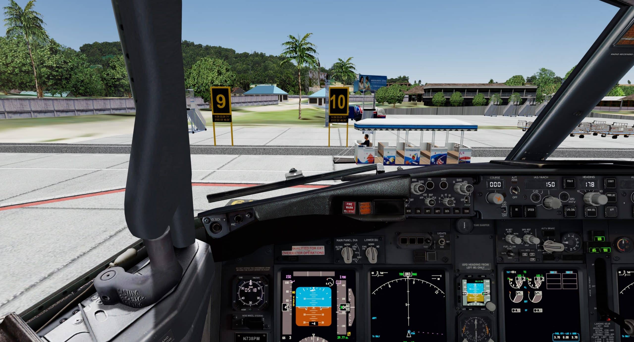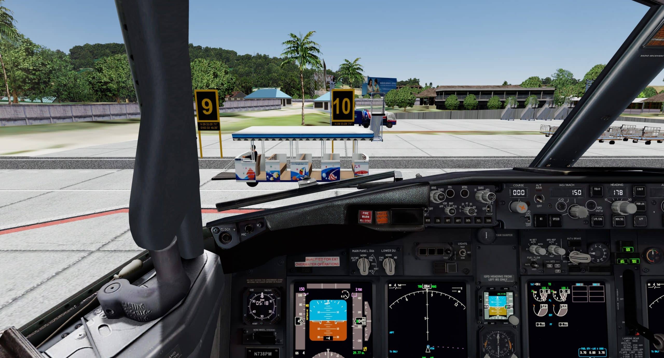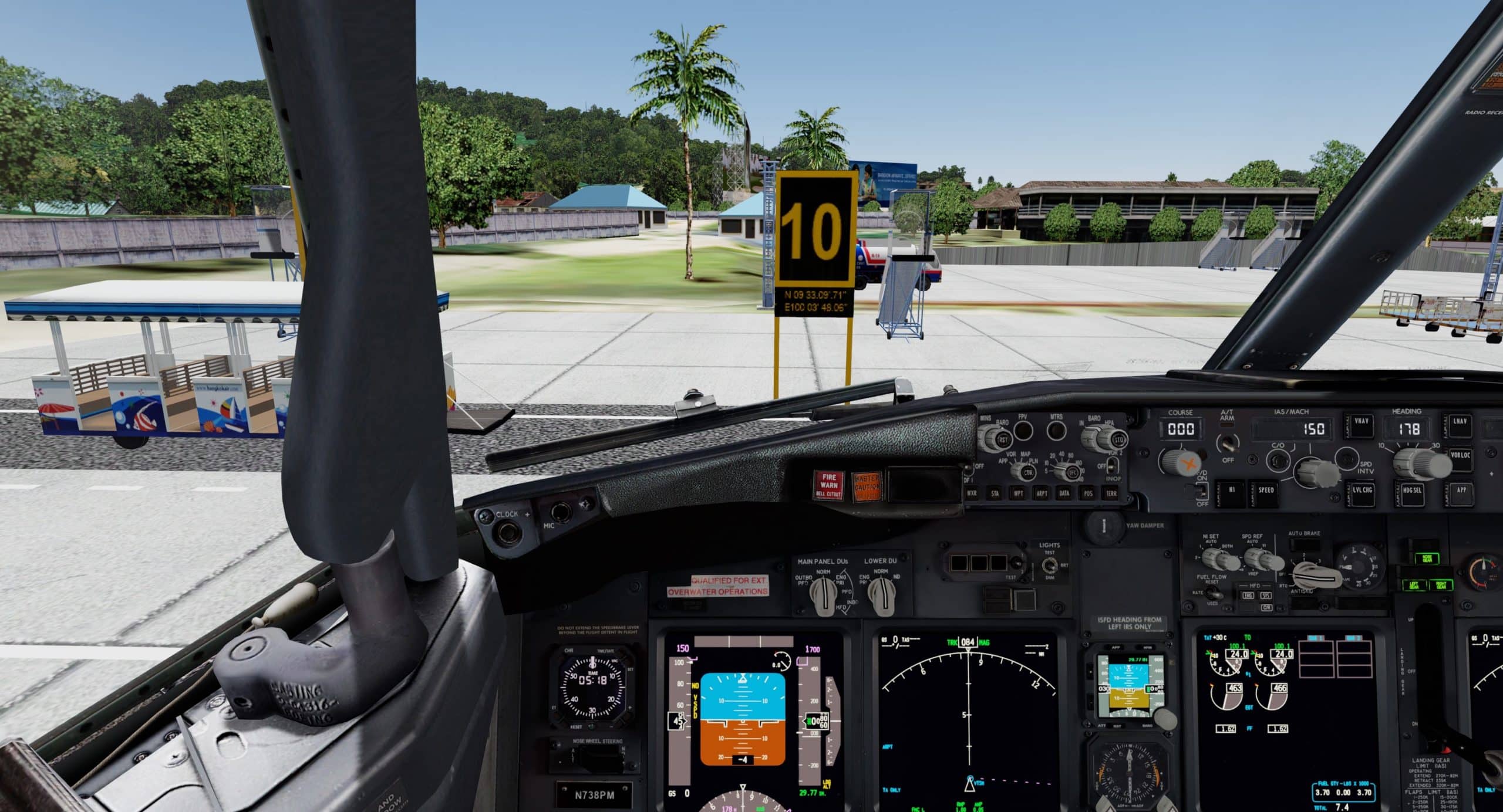 Wer ein DME Arc-Verfahren scheut: Es ist möglich, den Bogen durch Custom-Wegpunkte in der 737 „anzulegen“, die Punkte werden dann als Place-Bearing-Distance als SMU001/15, SMU350/15 usw. angegeben. Mehr Informationen dazu gibt es hier. Den Flug aus Bangkok hätte ich für euch auch gerne gemacht, aber ich hatte leider in Prepar3d HF2 reproduzierbar Abstürze hinter Bangkok – schade.