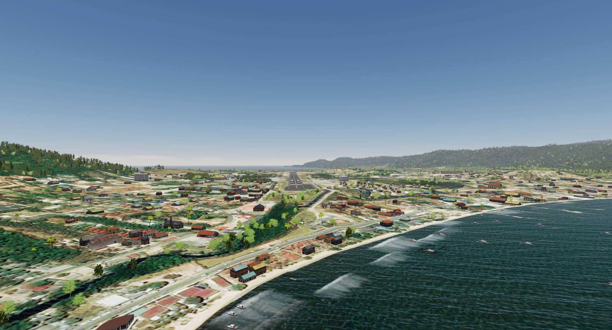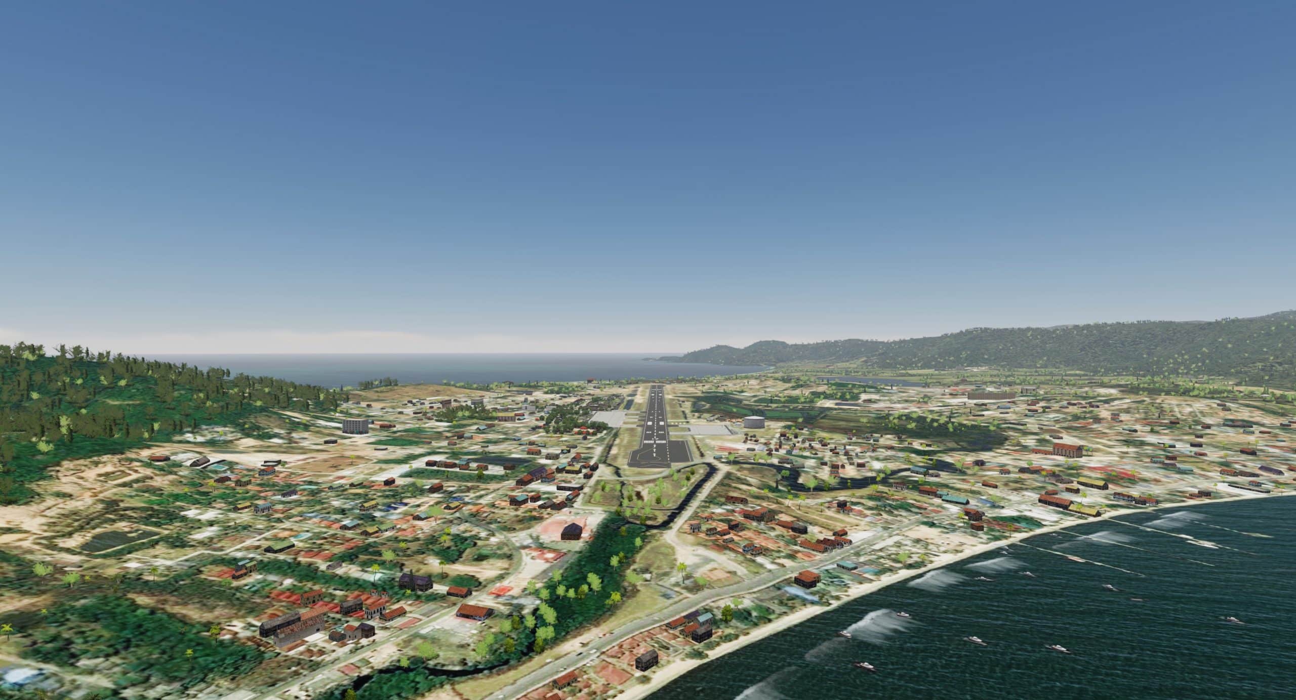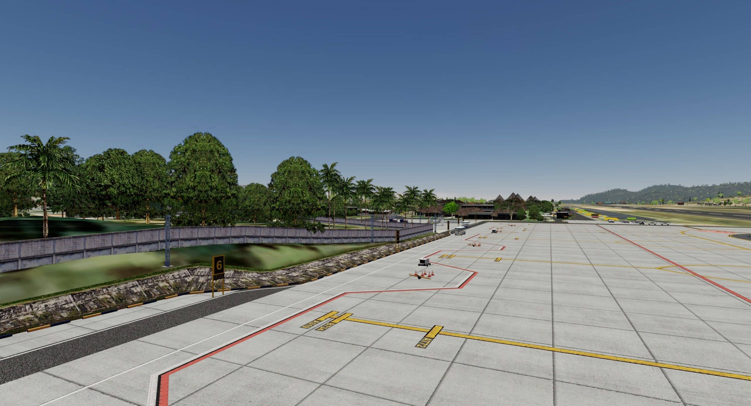 OK, es gibt in der Region von Samui auch bei Google und Apple keine vernünftigen Satellitenbilder zu sehen. Das erklärt zumindest die schlecht gemachten und sehr groben Bodentexturen unter dem Flughafen und in der Umgebung. Was mir aber tatsächlich überhaupt nicht gefällt sind die Texturen der Runway. Das Asphalt-Muster sieht sehr synthetisch aus und könnte aus einer Default-Szenerie stammen, und die Linien auf dem Vorfeld erscheinen mir viel zu breit.