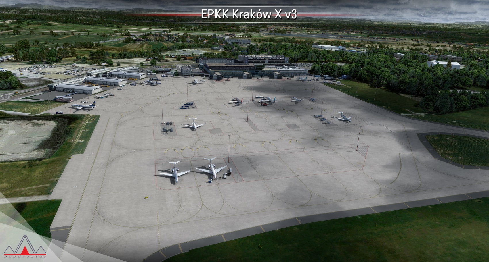 EPKK Kraków X v2 is compatible with all Drzewiecki Design products, all ORBX products, all PILOT’S products and all Megascenery products. It is not compatible with other products featuring included airports.