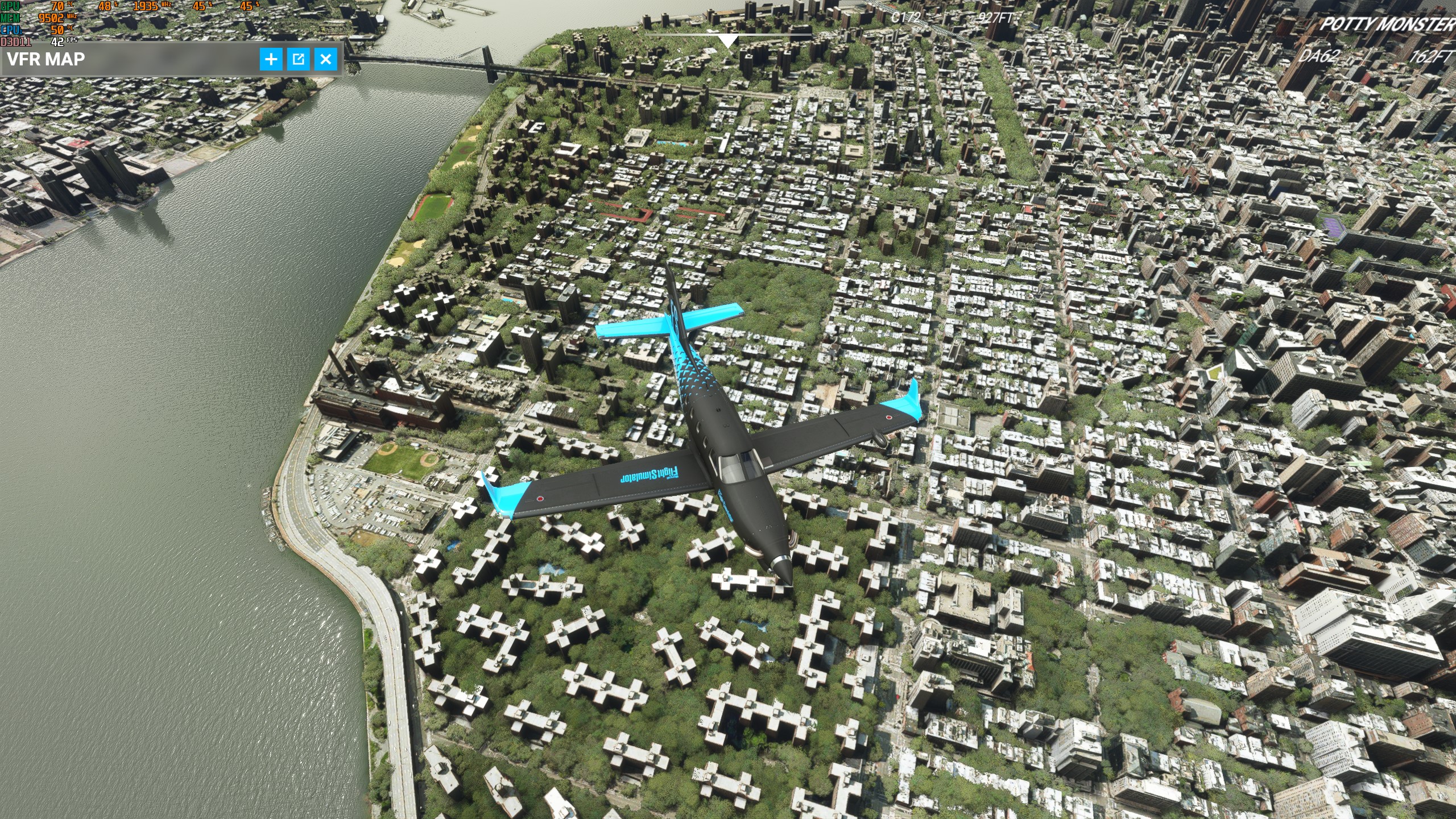Auch wenn das nur ein Sprichwort für etwas eigentlich Offensichtliches übersehen steht, ist die Aussicht auf die Städte für VFR Piloten ein reines Chaos. Viel zu viele Bäume, die versuchen den besten Platz zu ergattern um anschließend zu Mammutbäumen zu mutieren. Dieser Bug ist seit Jahren bekannt, jedoch wird von Asobo nichts dagegen unternommen.