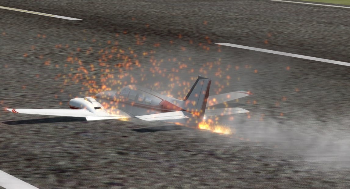 No crash it work and slide on ground with a nice metal sound. Belly landing is almost okay on P3Dv4… (you have also „tire blow“ and „two green only landing“ failures)