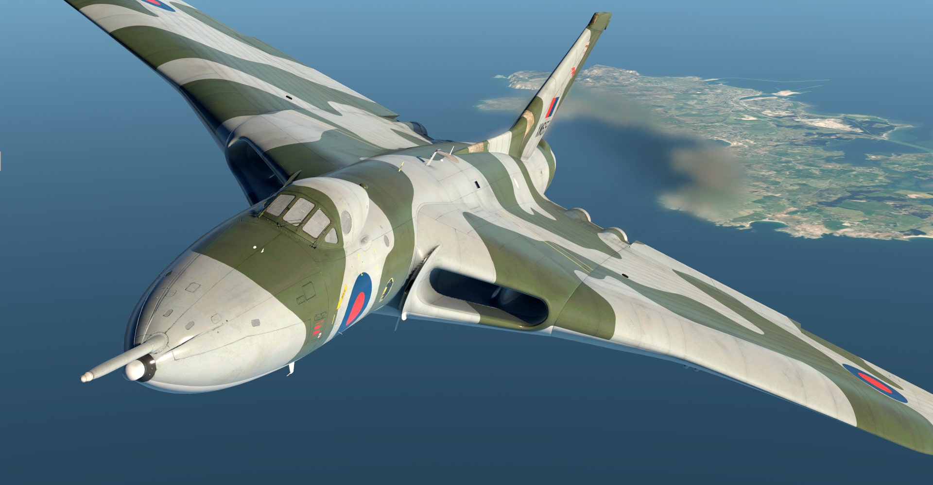 Kalter Krieg in Feuerball: Spätestens seit de James Bond sollte die Avro Vulcan einem breiten Publikum bekannt sein. Just Flight arbeitet derzeit an einer X-Plane-Umsetzung des Langstreckenbombers.