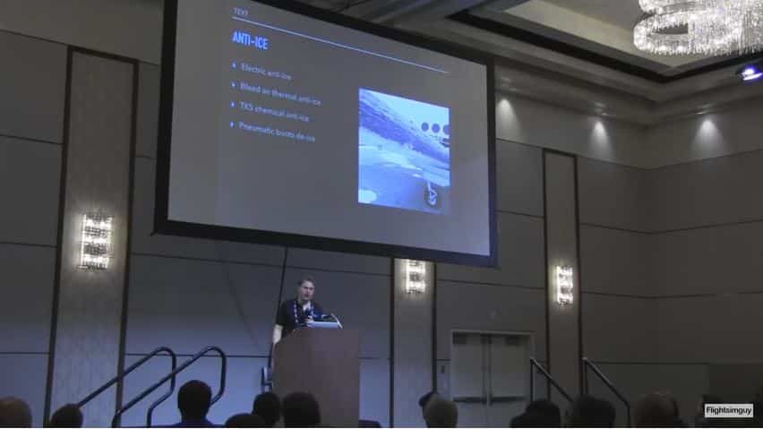Auch mit der Vereisung und ihren verschiedenen Bekämpfungssystemen hat er sich beschäftigt. So wird es zukünftig Elektrische, Bleed Air, Chemische und Pneumatische Enteisungssysteme geben. Und zumindest bei letzteren soll man sowohl die sich aufbauende Vereisung sehen können, wie auch das Abplatzen. Das Problem bei diesen Ansatz ist natürlich, dass es versagt solange sich noch kein Eispanzer gebildet hat, den das System absprengen kann.