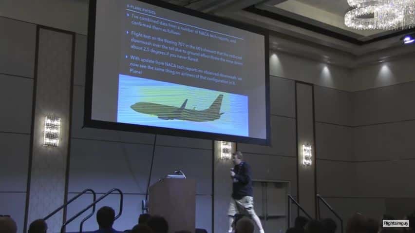 .Austin ließ sich von einigen NACA Berichten aus den 60ern davon überzeugen, dass der Downwash Effekt des Höhenleitwerks in Bodennähe deutlich geringer war als modelliert. Nach einer Korrektur verhielt sich eine Boeing auch in X-Plane so, wie sich in den Versuchen die verwendete 707 benahm.