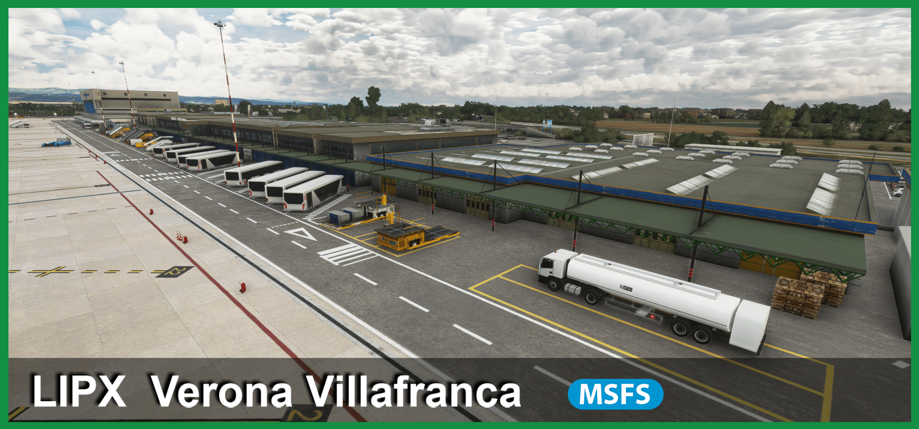 Der Airport liegt knapp 10km südwestlich von Verona, Italien und fertigte im Jahr 2022 mehr als 4 Millionen Passagiere ab. RFSceneryBuilding legt großen Wert auf Details, korrekten Nachbau sowie Beleuchtung.