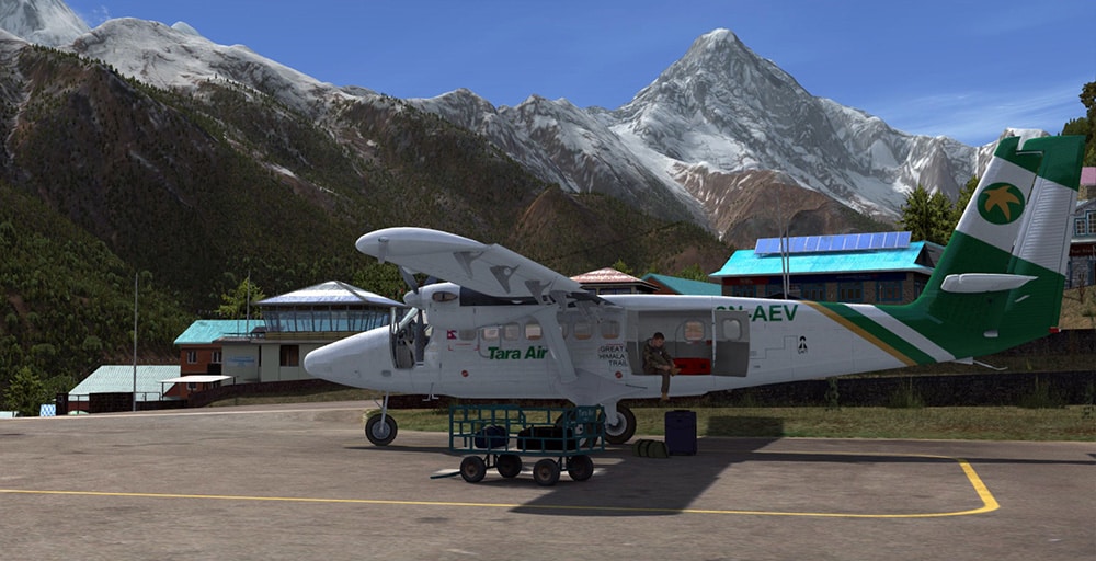 Berechtigte Frage (die auch schon bei der allerersten Version 2007 aufgekommen ist). Natürlich ist es für mich als Entwickler immer „bequemer“, keine Wintertexturen zu liefern. Im Falle von Lukla ist es aber wirklich so – und das hatte mich bei meinen ersten Recherchen selbst überrascht: Schnee ist selbst in dieser Höhe aufgrund der Nähe zum Äquator eine absolute Ausnahme.
