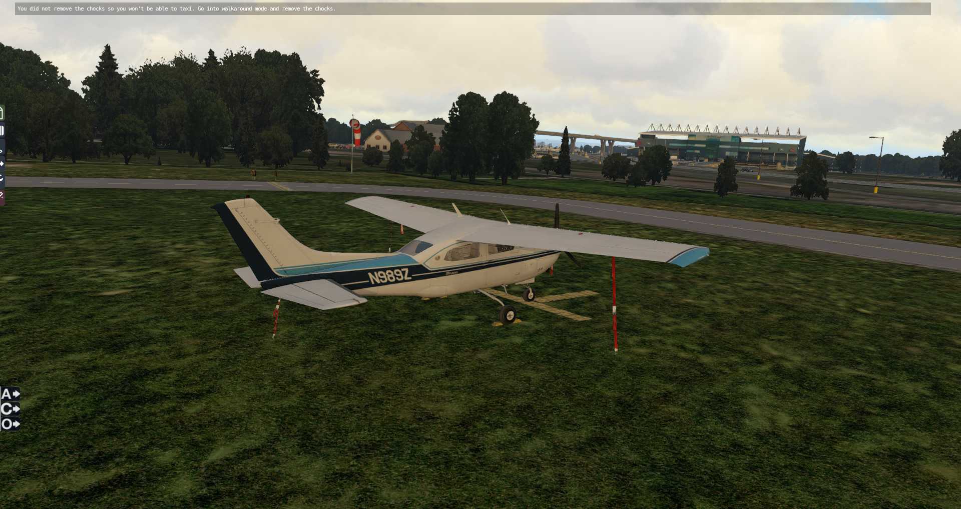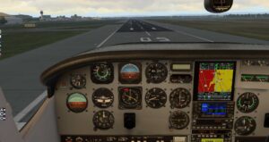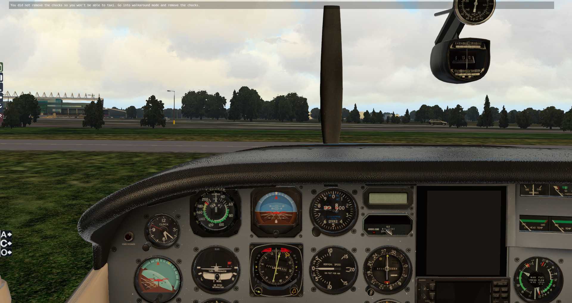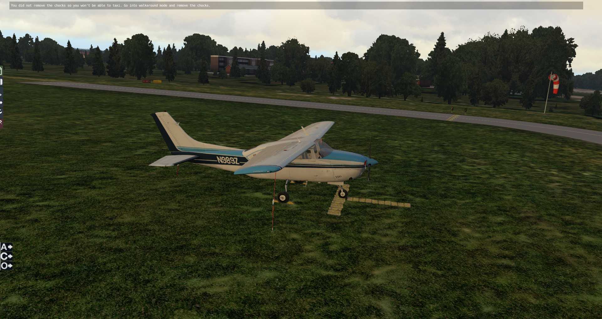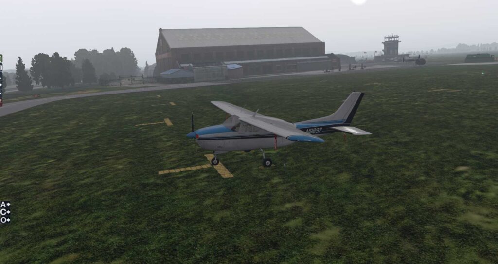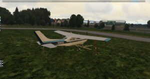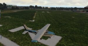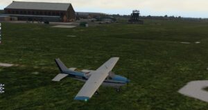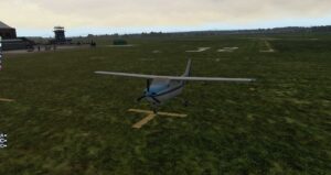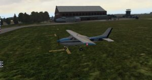Doch das sieht man natürlich noch nicht, wenn wir auf dem Flughafen selbst stehen. Wobei man auf den ersten Blick sieht, dass es nicht wirklich besonders viel Flughafen ist. Wir verwenden dafür mal wieder die Carenado CT210 mit REP Plug-in, auch wenn man diese Maschine mit ihren empfindlichen Fahrwerk in der Realität nur sehr ungern auf einer Graspiste nutzen würde.