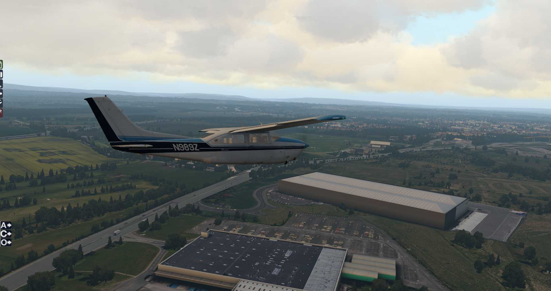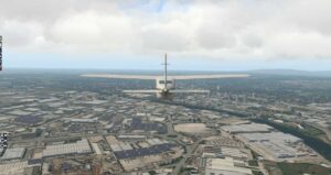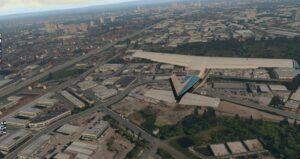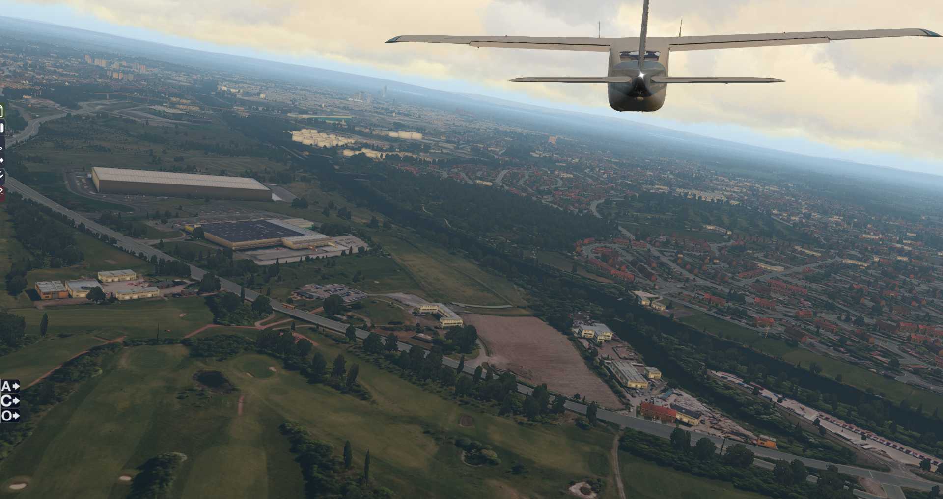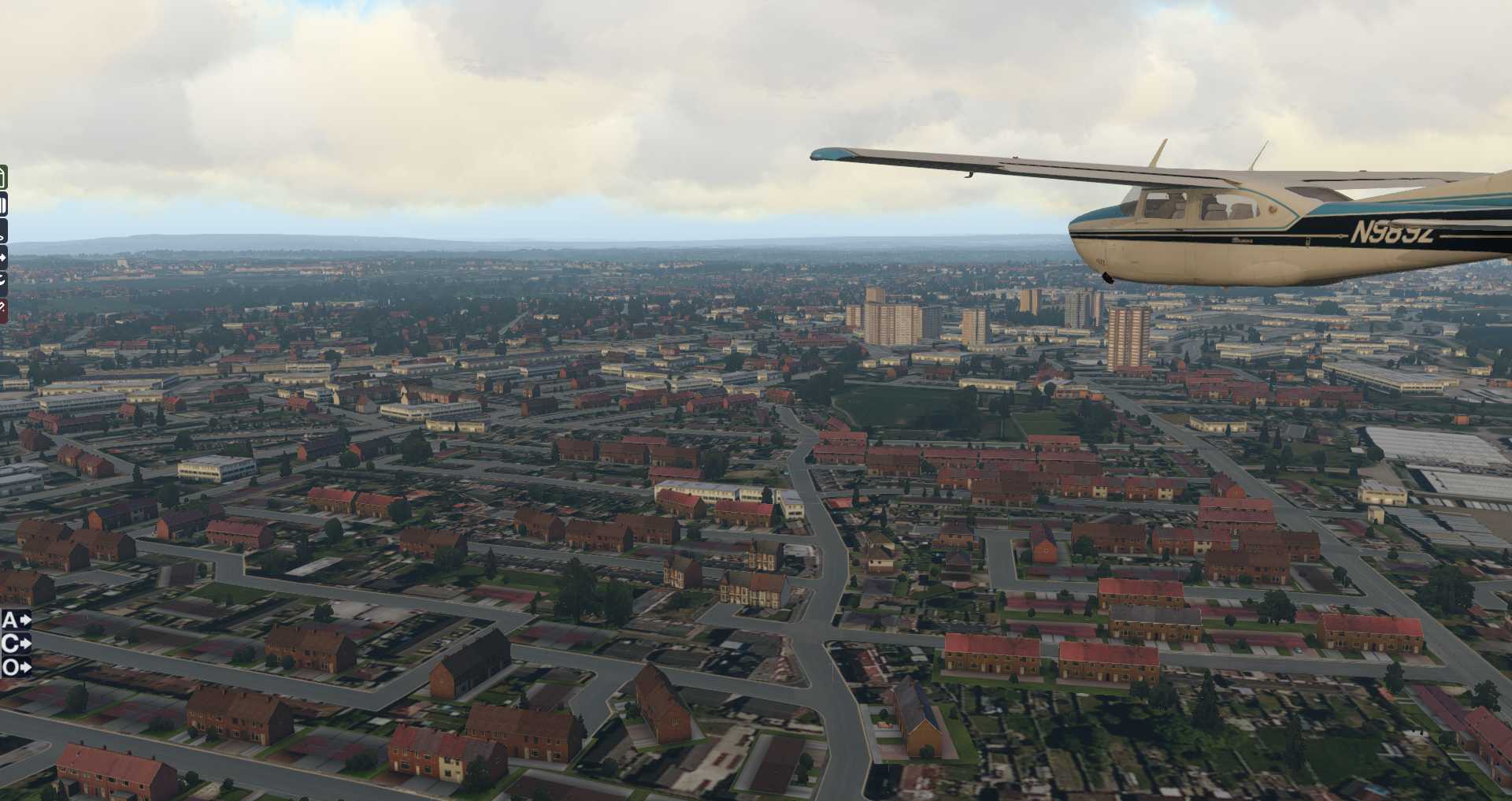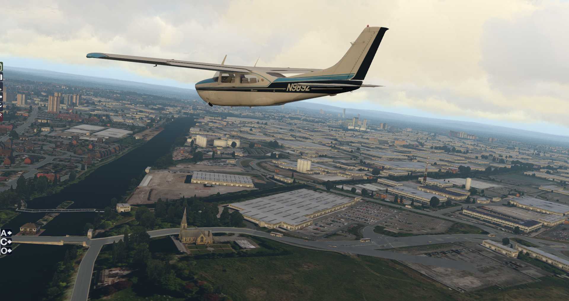 Und wie wir sehen, wir sehen nichts. Zumindest nichts was in X-Plane fremdelt. Egal ob generische Gebäude, Points of Interest, die Bodentexturen oder der X-Plane Autoverkehr alles wirkt natürlich und sauber. Auch die Tatsache, dass in Großbritannien die Autos auf der linken Seite fahren.