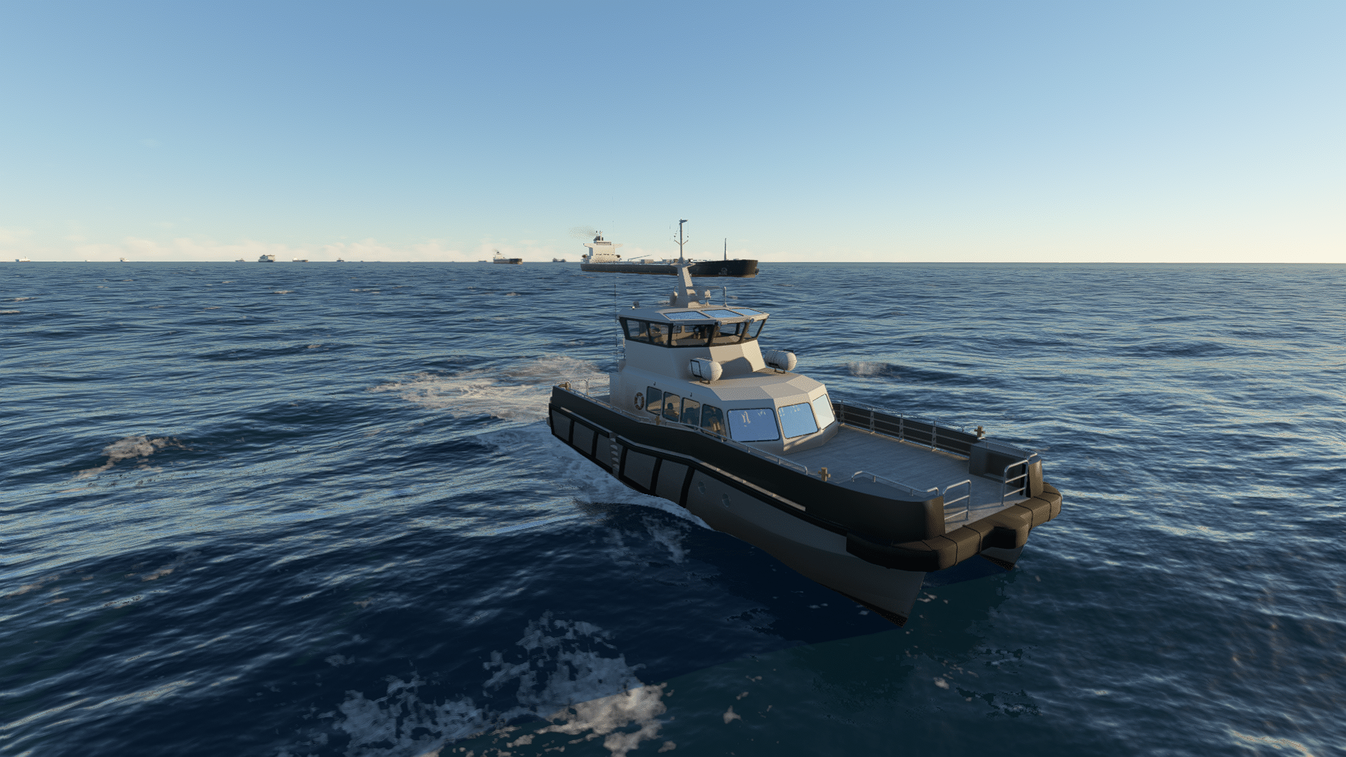 Ein lustiges Gimmick bieten das Addon obendrauf: Ein steuerbares CTV, Crew Transfer Vessel. Dieser Zubringer-Schiffe sind so etwas wie die Pendelbusse für die Menschen, die draußen auf See arbeiten. Im Inneren des Schiffes sitzen also auch Fahrgäste und auf der Brücke steuert das entsprechende nautische Personal. Die Bildschirme sind zwar nicht funktionsfähig, aber der MSFS ist eben auch kein Schiffsimulator. Aber auch ohne akkurate Umsetzung macht es durchaus Laune, eine kleine Runde mit dem CTV durch einen großen Haufen Schiffe zu drehen, die vor einem Hafen auf Reede liegen.