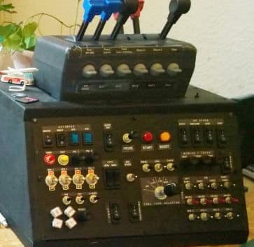 Im Lauf meiner „Flusikarriere“ habe ich irgendwann angefangen, mir kleine Schaltpults zu bauen. Angefangen damit, dass ich mir 8 Schalter und ein kleines Plastikgehäuse bei Conrad bestellt habe um die Lichter im virtuellen Cockpit zu schalten. Irgendwann kam dann ein Saitek Switch Panel dazu, dann ein VRInsight MCP Combo und letztlich ein größeres, selbstgebautes Schaltpult, von dem es leider nur dies eine schlechte Bild gibt:
