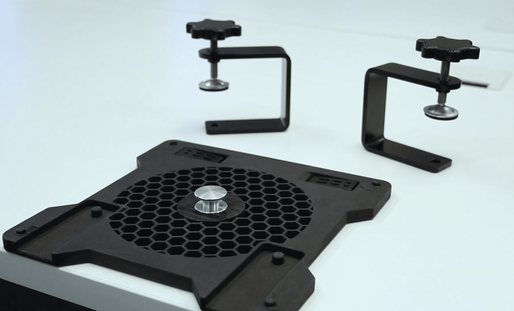 Weiterhin liegen im Karton noch die mächtig massiven Halteklammern für eine Tischplatte bis zur Stärke von ca. 5 cm. Diese können in der Kombination mit der Halteplatte verwendet werden (auch dazu gleich mehr).