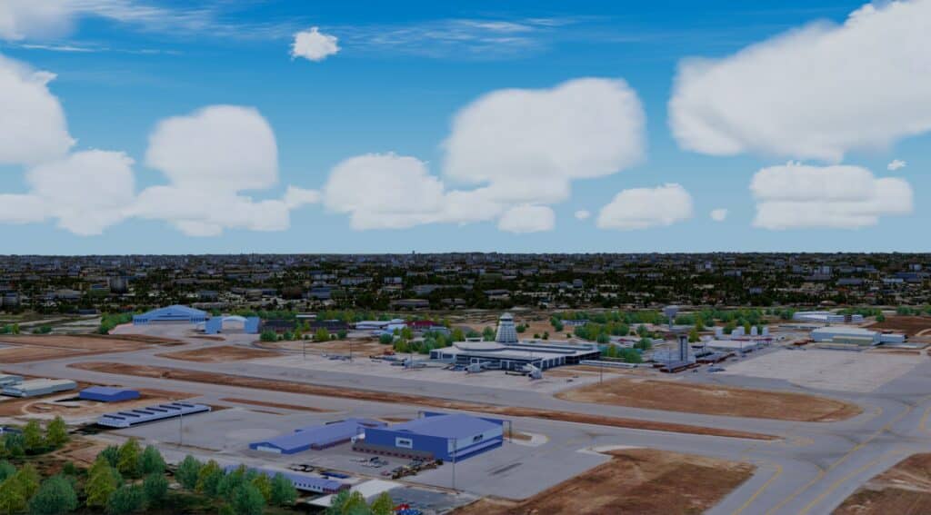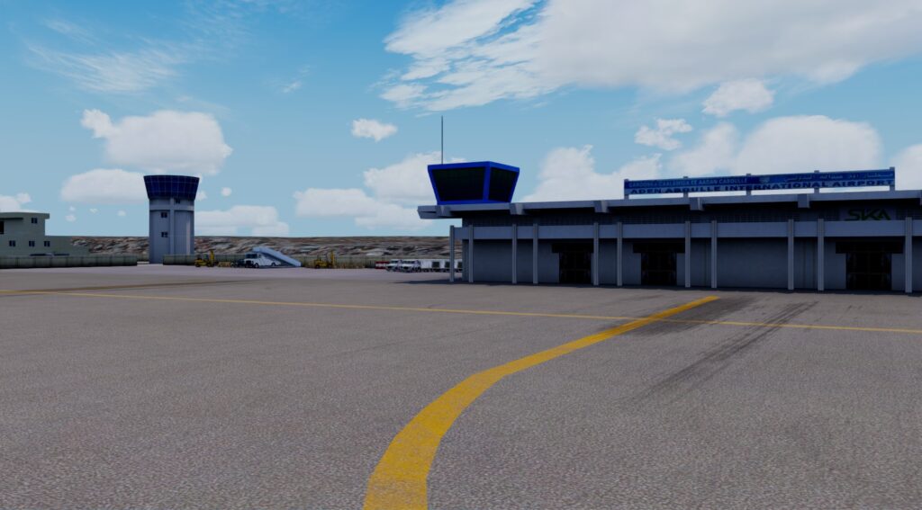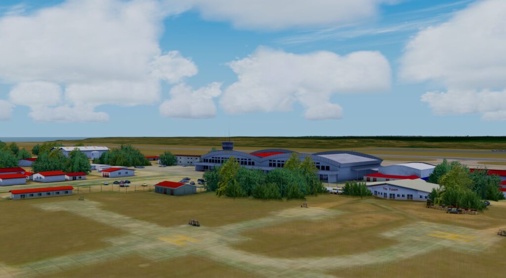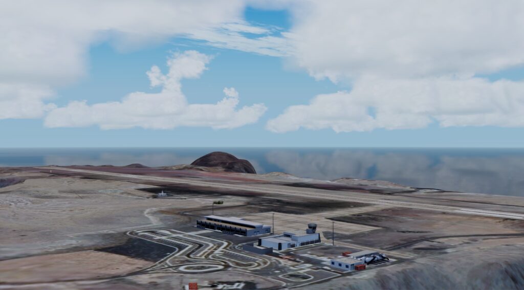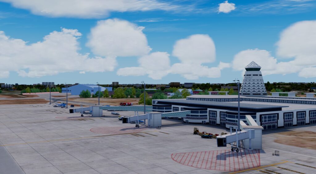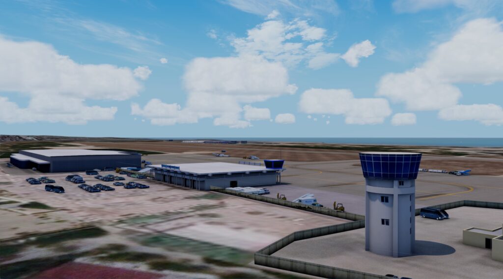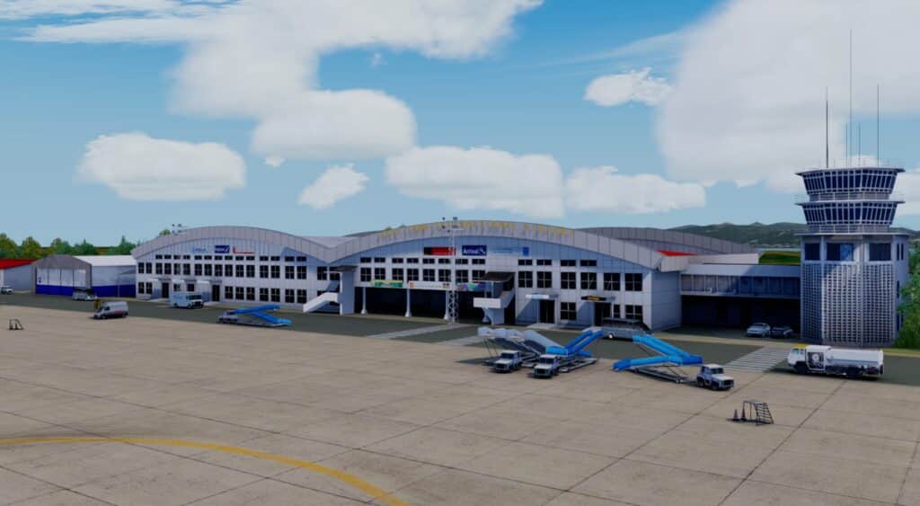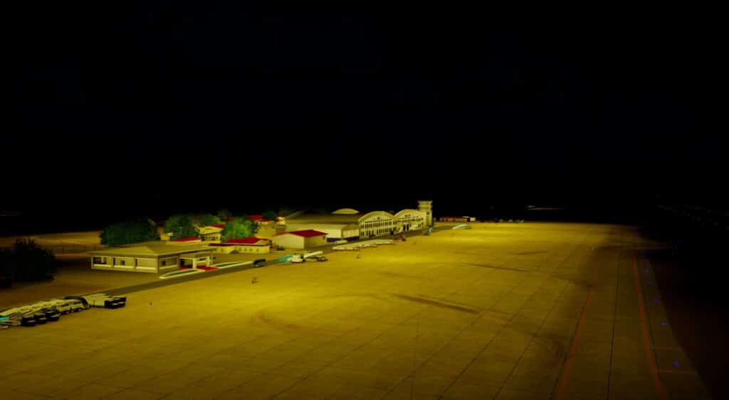 Er wurde Ende Januar von FSCGAA für P3D erstellt und veröffentlicht. Mit knapp 300 MB Dateigröße und 18€ schlägt der Flughafen zu Buche. Man erkennt auch hier die Handschrift der Entwickler. Allerdings empfinde ich den doch recht kleinen Flughafen als recht steril. Zwar gibt es Fahrzeuge und Objekte, doch die Flächen zwischen Rollbahnen und Vorfeld sehen sehr nach Photoshop und Füllungstool aus. Das Ambiente bei Dunkelheit ist überhaupt nicht vorhanden, ob der Flughafen allerdings nachts angeflogen wird, kann ich mir auch nicht vorstellen. Es gibt zudem auch nicht wirklich viel zu beleuchten. Die Texturen der Gebäude bei Tag finde ich hingegen wirklich ordentlich. Das kleine Terminal wirkt realistisch, aber auch sehr spartanisch. Das Autogen um den Flughafen wirkt leider jedoch katastrophal.