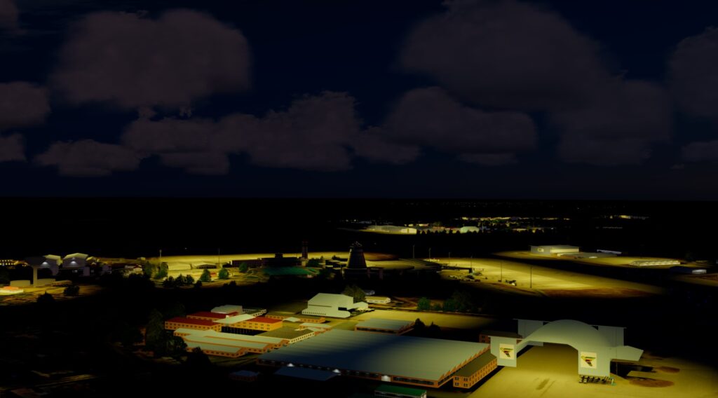 Schauen wir uns den Flughafen im Simulator an. Wer ihn einmal installiert hat, wird schnell feststellen, dass er wirklich gut aussieht. Zwar ist das Flughafengelände relativ übersichtlich, trotzdem ist die Liebe zum Detail erkennbar. Viele typische Gebäude wurden umgesetzt. Vor allem der markante Tower ist gut wiederzuerkennen. Die Texturen sind rundum scharf, aber auch nicht überzeichnet. Er passt sich leider nicht wirklich in die Landschaft ein. In der Nacht ist die dynamische Beleuchtung ein Plus, welches die Szenerie mit sich bringt auch wenn es etwas zu hell wirkt. Die platzierten Flughafenfahrzeuge hauchen dem Flughafen Leben ein (stören allerdings auch an manchen Positionen) und auch die Abnutzungsspuren auf dem Vorfeld wirken realistisch.