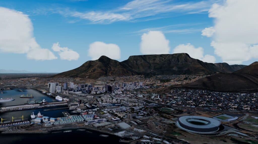 Da ich vor ein paar Wochen selbst in Kapstadt war, ist die Erinnerung daran noch recht frisch. Parallel dazu nutze ich den Flughafen von Cape Town (ORBX Africa habe ich allerdings deaktiviert), da durch dieses Produkt die Gegend ebenfalls aufgehübscht wird.