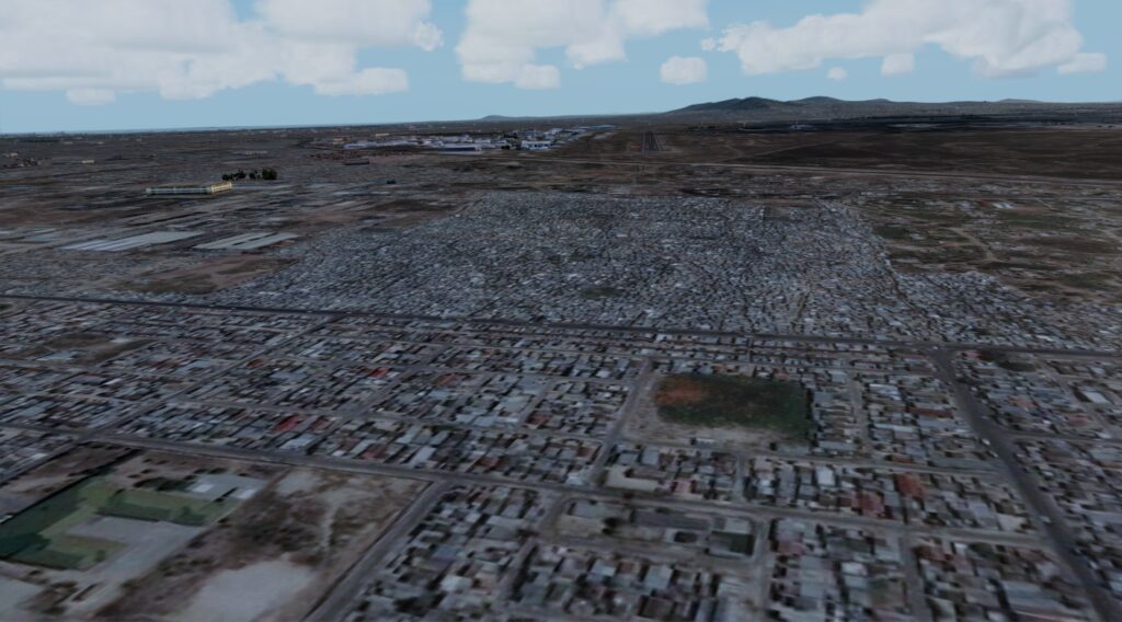 Was mir hingegen nicht so gut gefällt sind die Bodentexturen, die aus 10.000 Fuß zwar noch super wirken, bei 1000ft allerdings schon nicht mehr ganz so scharf und eher grob aufgelöst sind. Auch finde ich die Dichte der Gebäude etwas gering. Vor allem Richtung intl. Flughafen und Townships. Die Metropolregion um Kapstadt ist sehr dicht besiedelt. Dieses Feeling kommt leider im Addon nicht so gut rüber, da doch viel Autogen einfach fehlt.