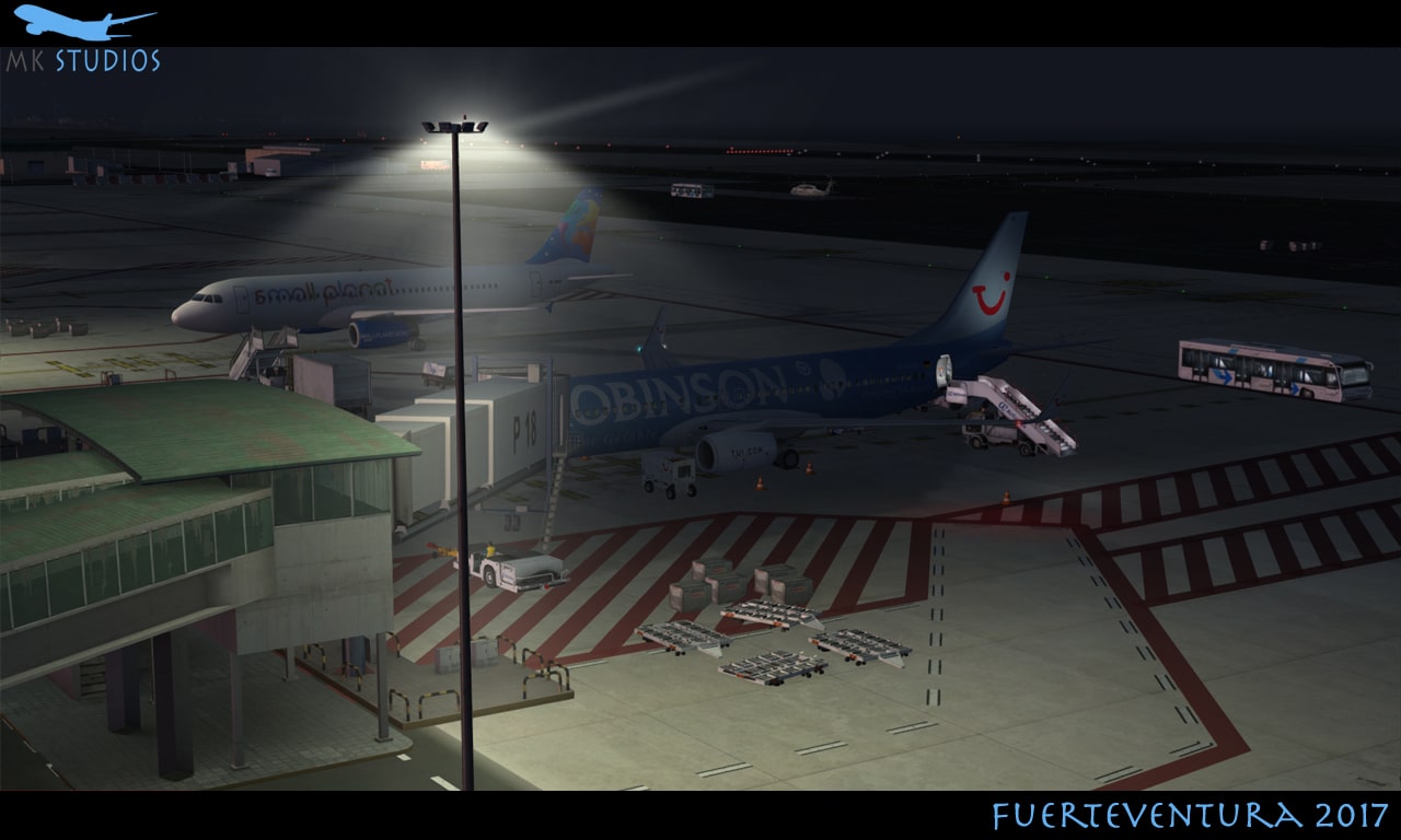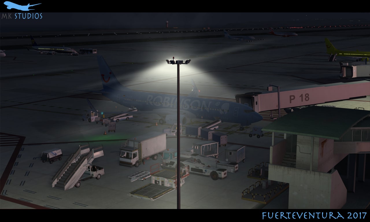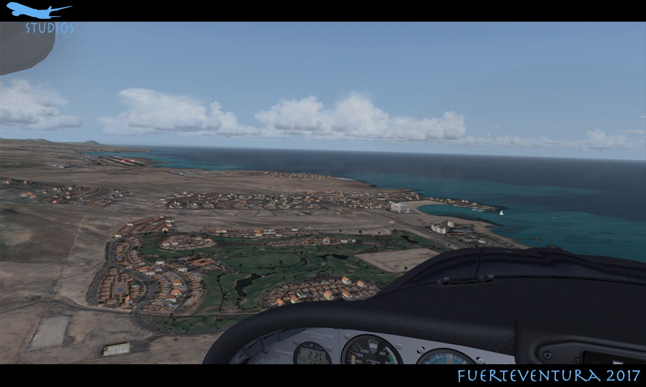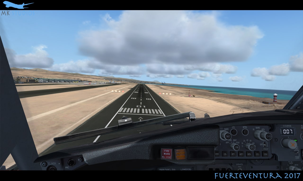 MK Studios haben mit Fuerteventura 2017 eine solide Szenerie der Insel abgeliefert, die kaum Wünsche offen lässt. Das Luftbild ist zweckmäßig und gibt ein naturgetreues Abbild der Insel wider und ist hierfür ausreichend aufgelöst. Für ausgiebige VFR-Entdeckungstouren reicht es hingegen nicht wirklich, da exakt platziertes Autogen und akkurate Hotelnachbildungen fehlen. Das war aber sicherlich auch nicht die Absicht der Szenerie-Designer. Der Flughafen von Fuerteventura wurde dafür schön umgesetzt und im Prepar3d v4 mit Dynamic Lighting macht er vor allem in der Dämmerung viel Freude. Die Bildwiederholrate ist dabei stets im grünen Bereich. Den dafür aufgerufenen Preis von 25 Euro halte ich für angemessen. Mit der Qualität von sim-wings La Palma kann Fuerteventura 2017 zwar nicht ganz mithalten, dennoch würde ich jeden weiteren Kanaren-Airport von MK Studios sofort kaufen. Besonders Lanzarote wäre „nice-to-have“, da diese Insel, die nur 12 Kilometer von Fuerteventura entfernt liegt, zur Zeit im Simulator noch wie ein Fremdkörper aussieht.