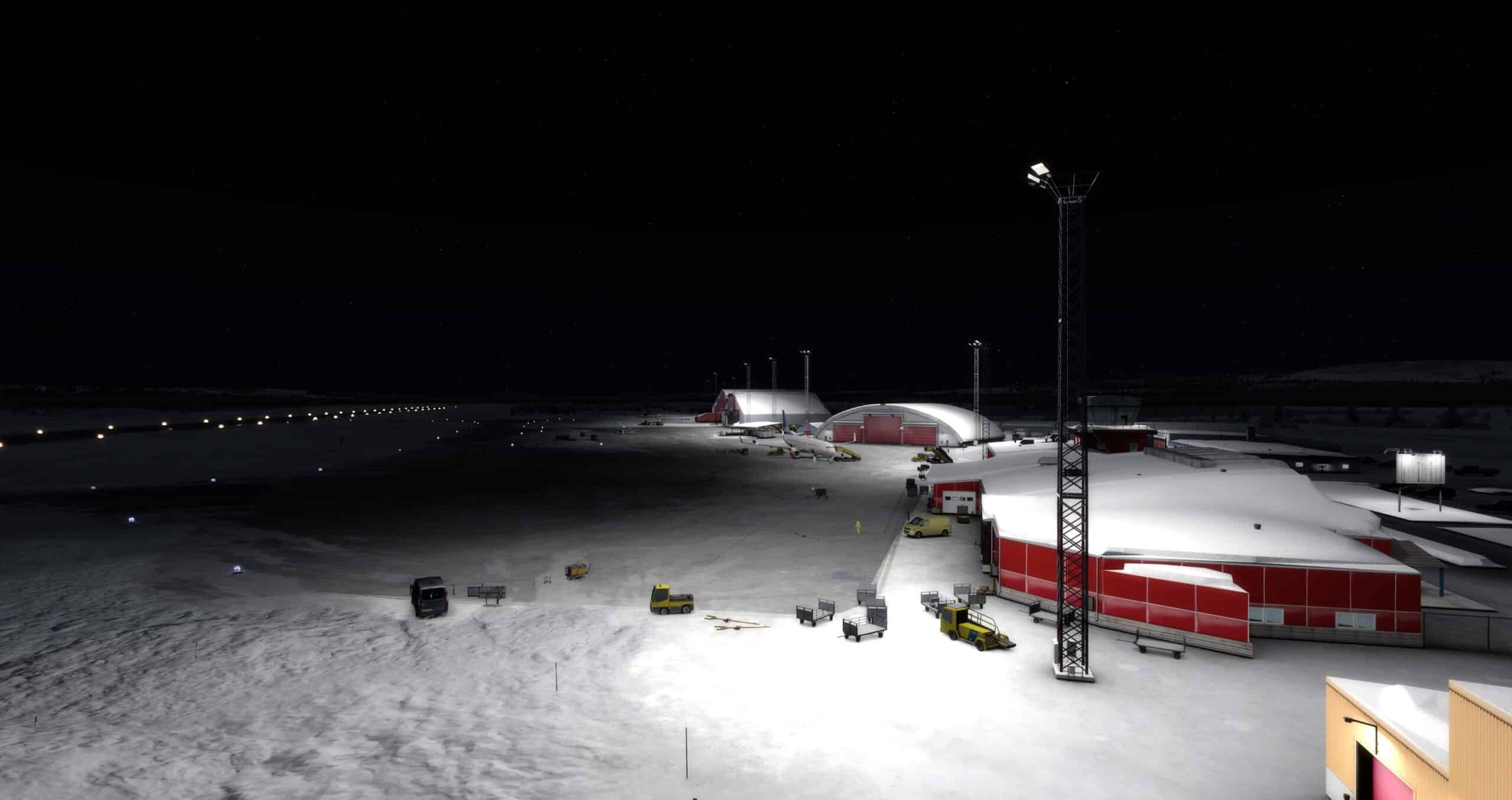 Die Schneeräumfahrzeuge stehen so auch auf den anderen Flugplätzen im Paket, aber hier haben sie ihre Berechtigung; in Kiruna liegen die Temperaturen eigentlich nur von Juni bis September durchgängig über dem Gefrierpunkt. Orbx verweist im „Klappentext“ auf die neuen Schneeeffekte, und die sehen meiner Meinung nach auch toll aus: