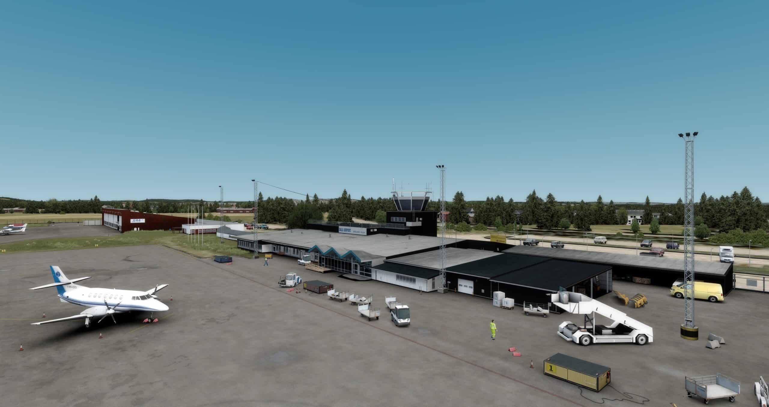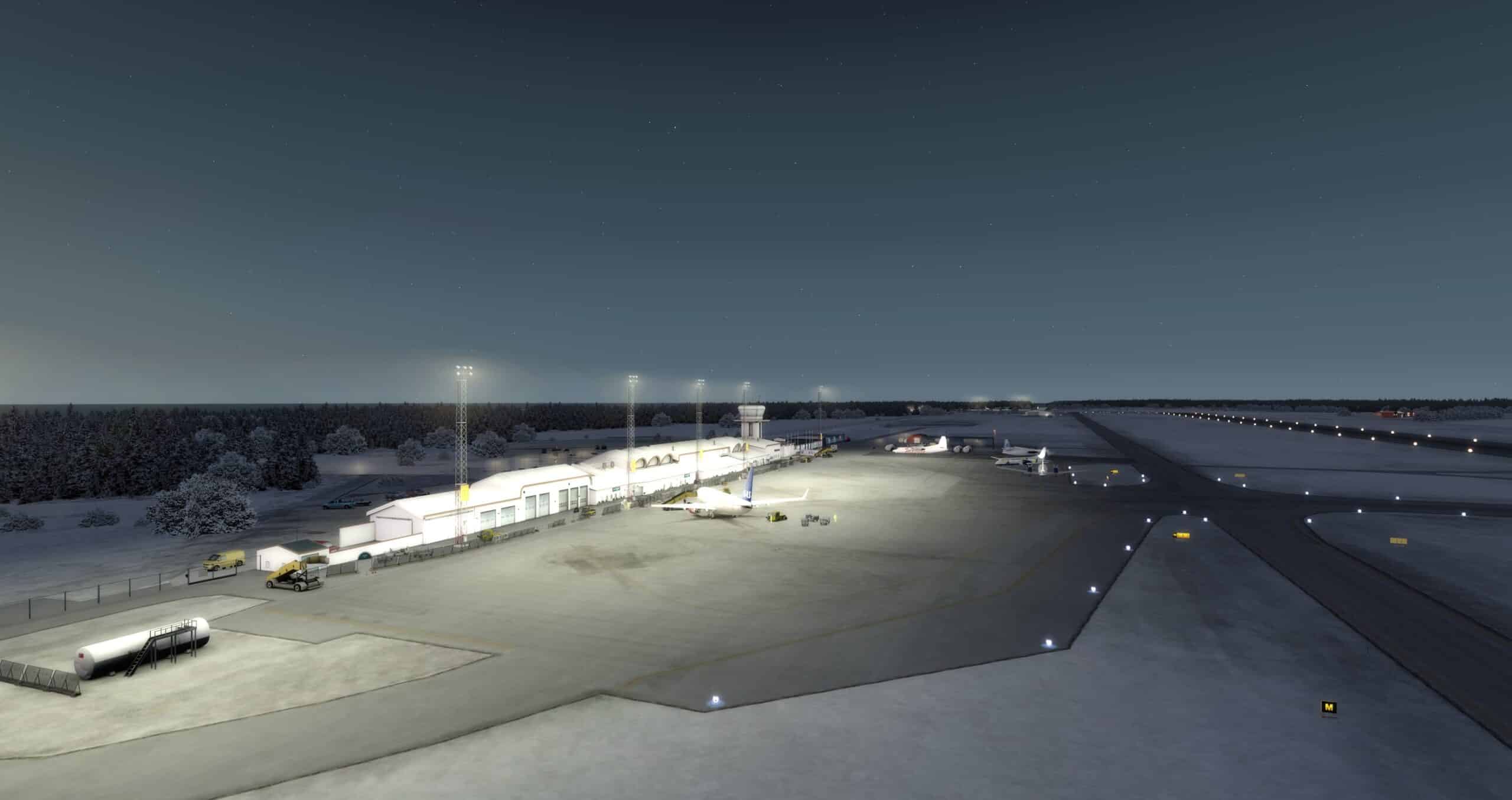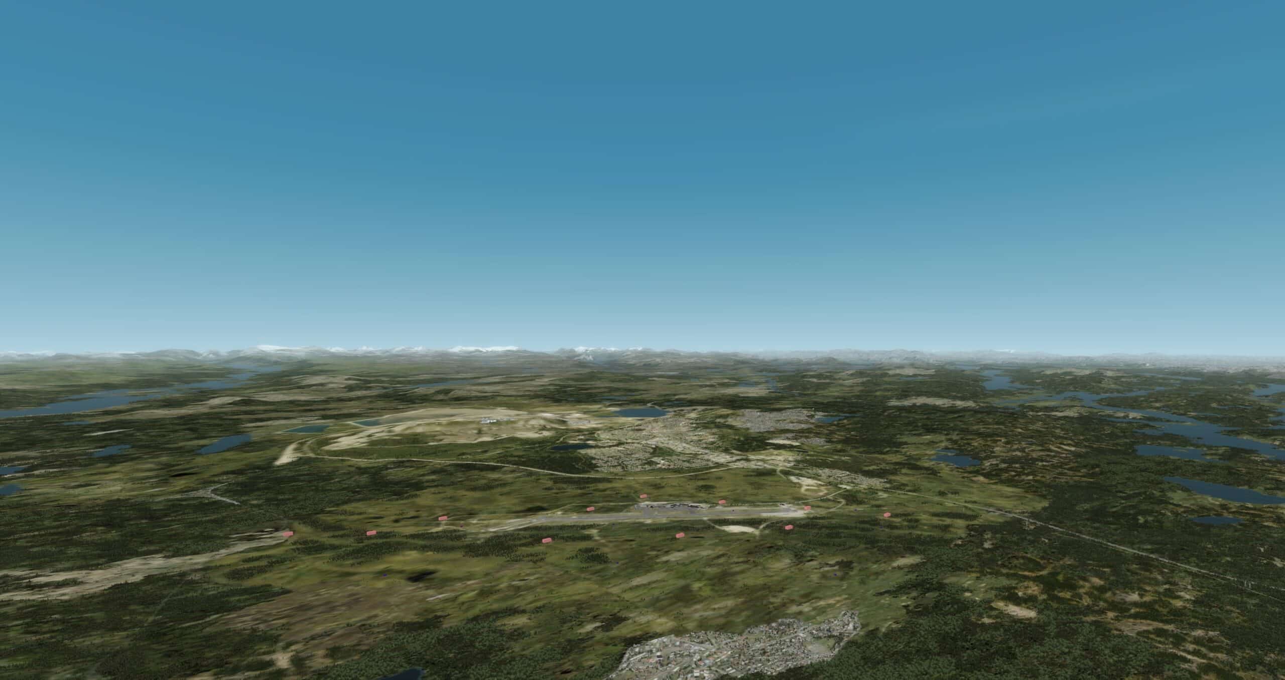 Bei all dem Hype um Orbx‘ TrueEarth Great Britain South geht eine andere kleine Veröffentlichung von Orbx leider unter: Orbx ESNQ Kiruna Airport. Der Name ist leicht irreführend: Es handelt sich um ein Paket mit drei Flugplätzen, die weit über das Land verstreut sind. Da ist zunächst der namensgebende Flugplatz Kiruna, nördlichster Flugplatz Schwedens. Kiruna ist eine Bergbaustadt, bekannt für Eisenerz, das von hier per Bahn nach Narvik in Norwegen geliefert wird. Dann Dala Airport vor den Türen der Stadt Borlänge, die wiederum nur einen Katzensprung von Stockholm entfernt ist, und zu guter Letzt Visby, Ferienflugplatz auf der Insel Gotland südwestlich von Stockholm in der Ostsee gelegen.