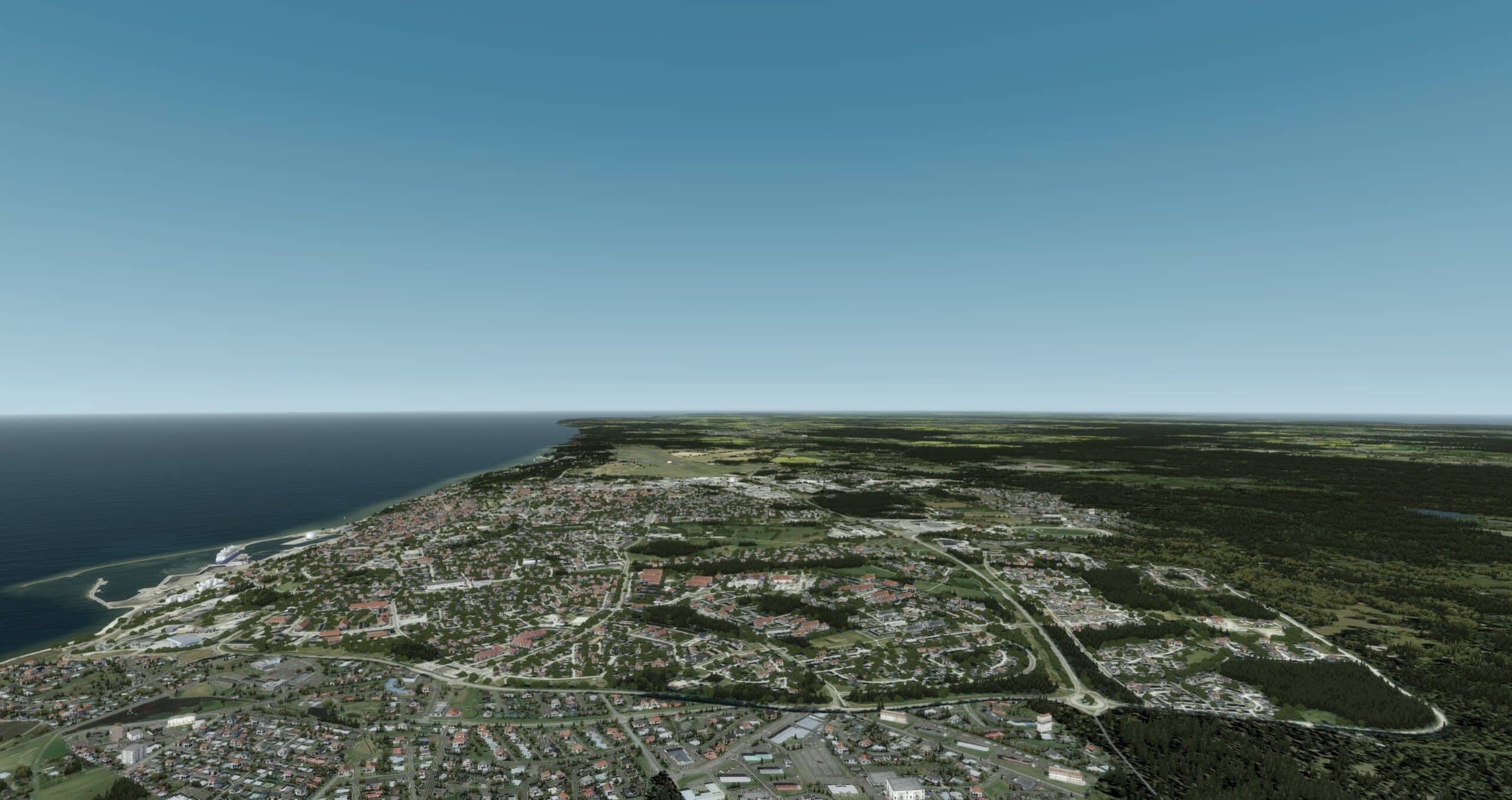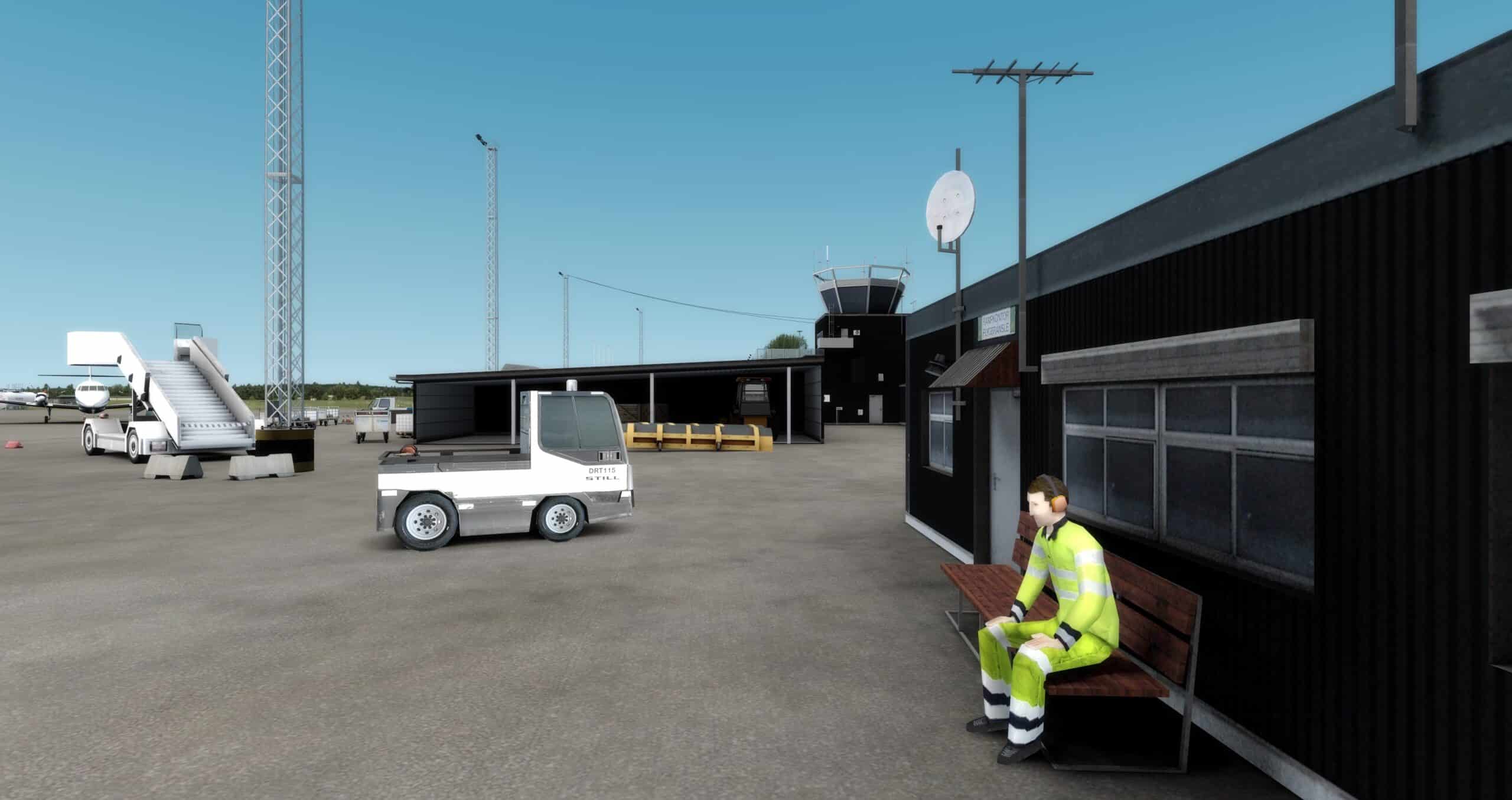 Spektakulär ist der Flughafen also nicht; auch nicht ganz so liebevoll detailliert oder vollgeräumt wie Dala und Kiruna. Der Star von Visby ist eher die Umgebung: Der Flughafen ist malerisch direkt an der Küste gelegen, der Anflug führt aus Süden kommend über die ebenfalls rudimentär modellierte Stadt.