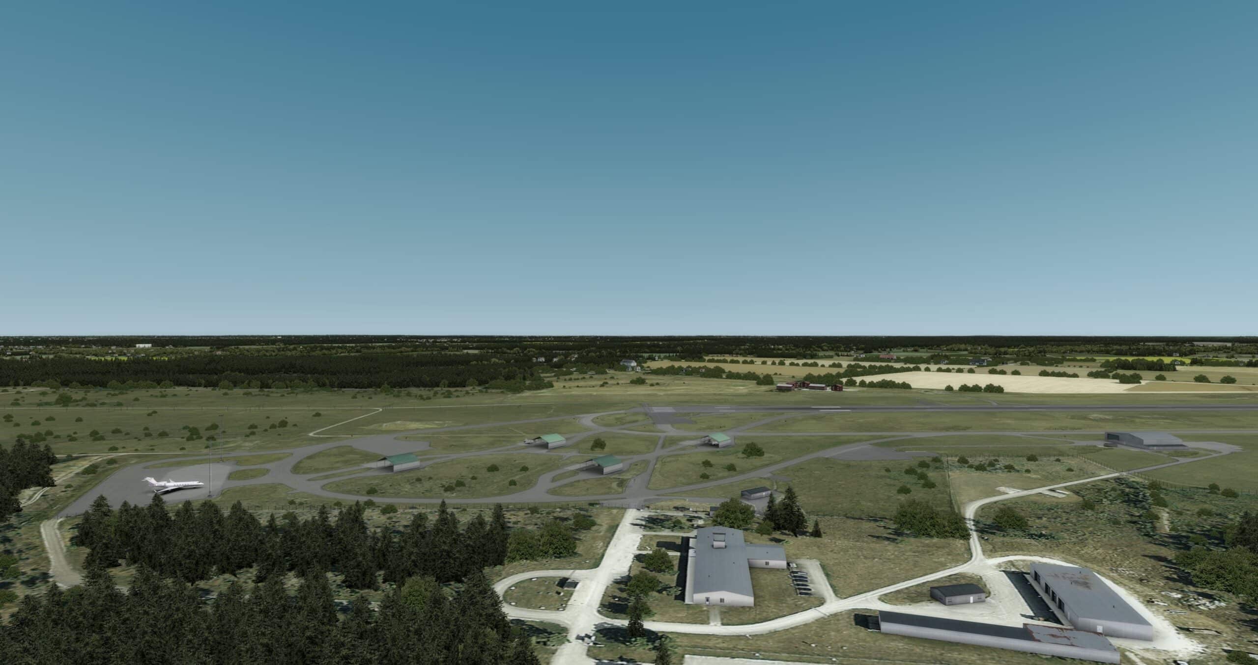 ESSV / VBY verfügt über eine 2 km lange Landebahn in Richtung 03/21, das Terminal befindet sich etwa auf Höhe der Mitte der Bahn. Im Norden schließt sich ein Areal mit Carports für Riggen-Kampfflugzeuge an (vielleicht wird die Versicherung für die Flugzeuge dann ja billiger). Südöstlich der Bahn gibt es aber noch ein paar befestigte Shelter, südwestlich liegt der General-Aviation-Bereich, und südlich der Hauptbahn liegt eine dazu passende Graspiste.