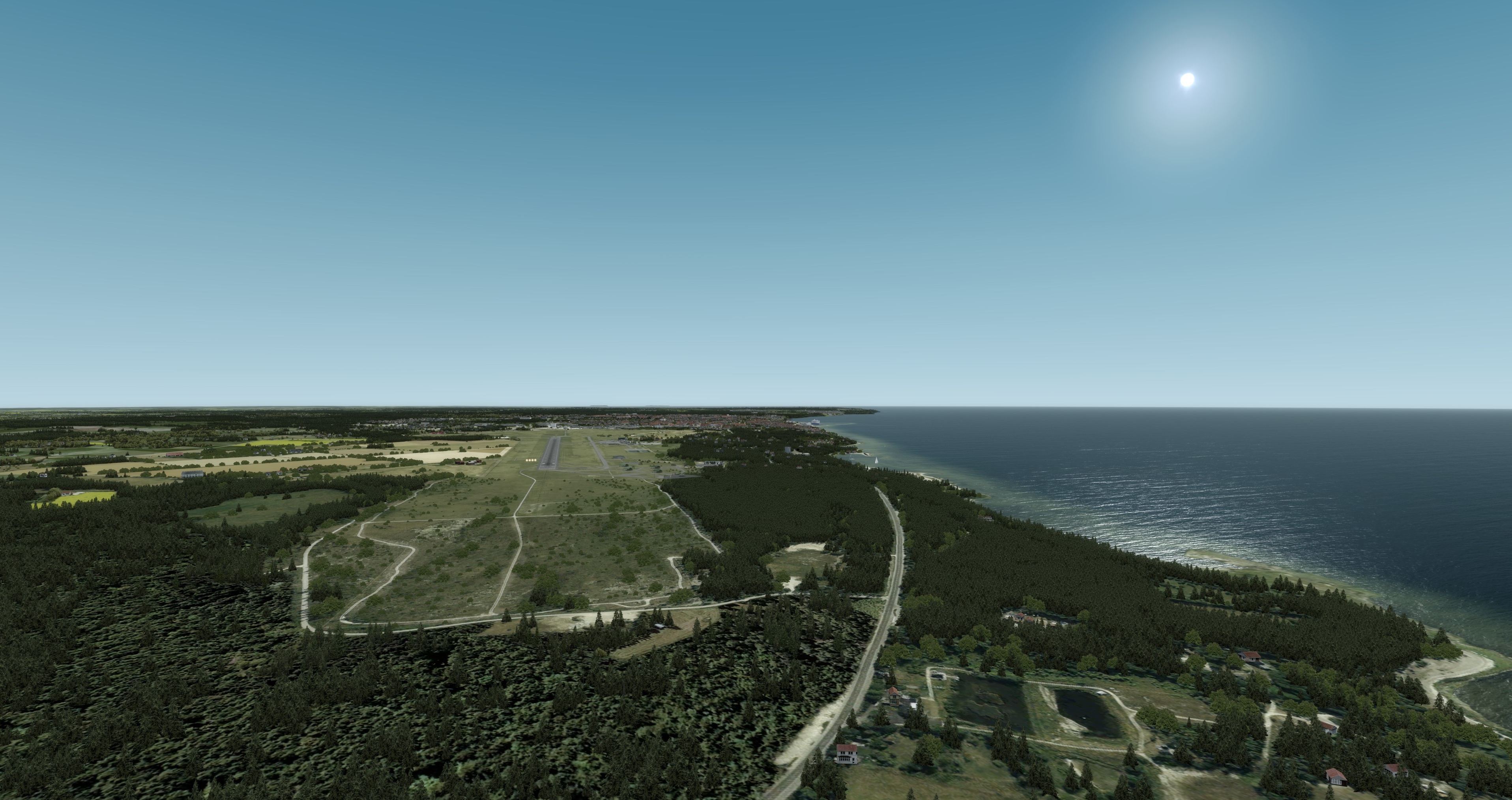 Im Winter fällt es nicht sehr auf, aber im Sommer finde ich die Fototextur, die unter dem Flugplatz liegt, etwas schlecht aufgelöst. Es kann aber sein, dass es in der Gegen einfach keine bessern Bilder gibt; auch Google Earth ist hier oben nicht sehr detailliert.